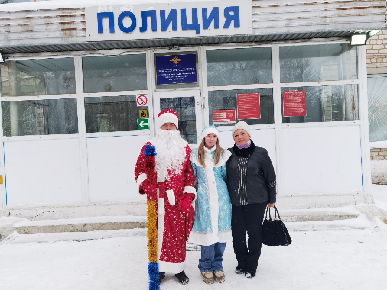 Сотрудники и ветераны ОМВД России «Артемовский» провели традиционную акцию «Полицейский Дед Мороз». Домой к полицейским семьям, где воспитываются маленькие дети, приезжали с поздравлениями Дед Мороз, Снегурочка и председатель Совета ветеранов Елена Макарочкина.