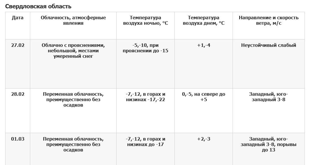 Дневные плюсы температуры ожидаются, главным образом, на севере Свердловской области, но и на юге не холодно: температура воздуха на 2° выше нормы (в среднем за сутки составит -6,-8°).
