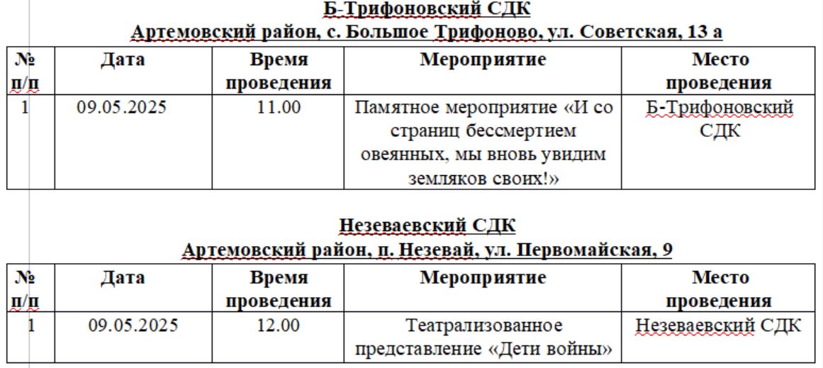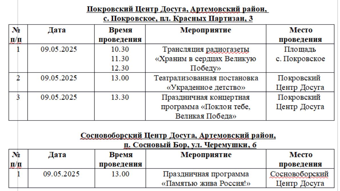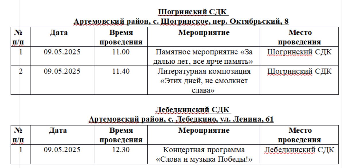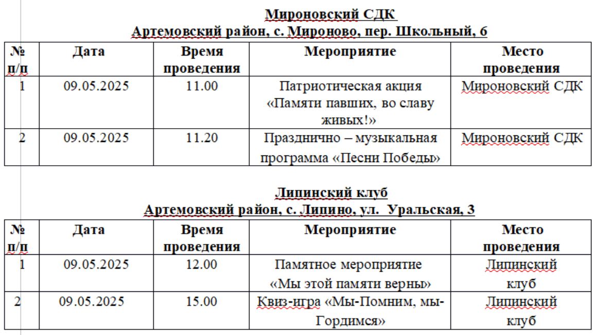 В поселках и селах района праздничные мероприятия в честь Дня Победы намечены в сельских Домах культуры и Центрах досуга. У памятных мест — возложение цветов в течение дня.