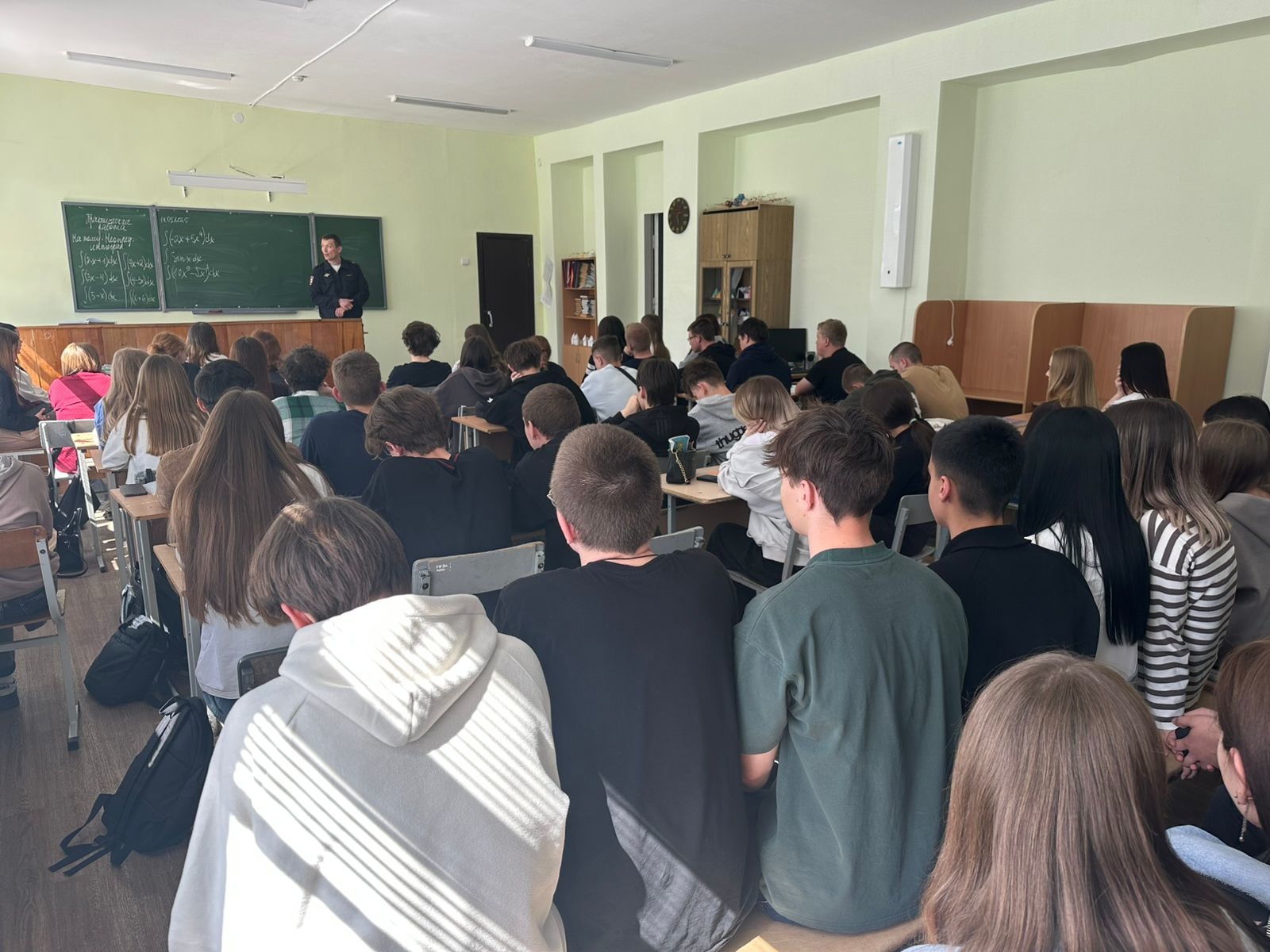 Разговаривал со студентами первого курса. Цель встречи — предупредить парней и девчонок, что демонстративное противоправное поведение, групповые разборки и драки, хулиганство, оскорбления социально незащищенных взрослых и подростков — недопустимы.