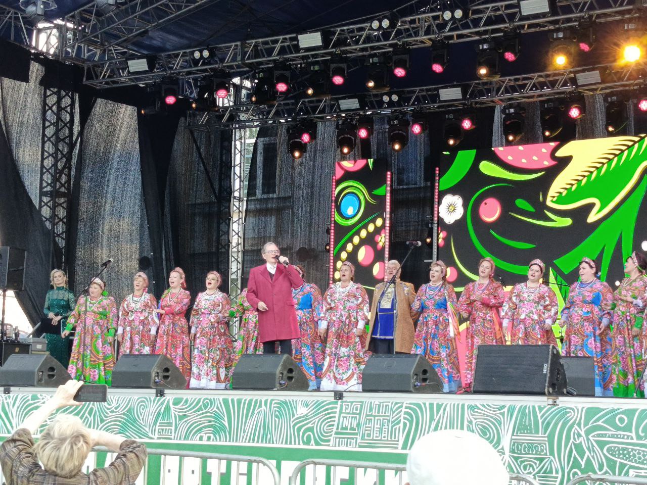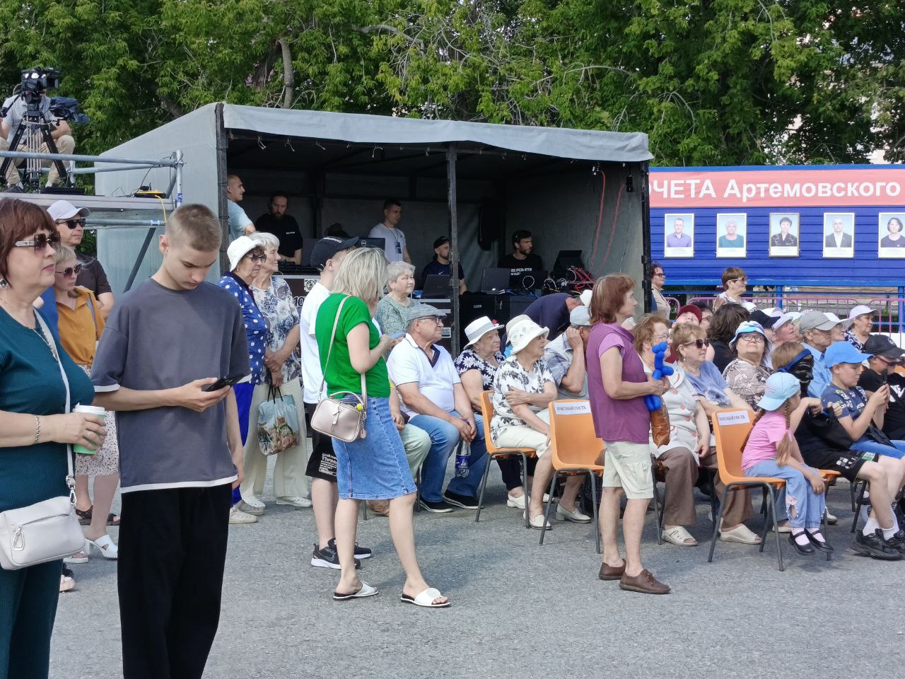 Со сцены гостей первым поприветствовал народный артист РФ Иван Пермяков. Настроение праздника и желание пуститься в пляс артемовцам, что пришли к главной городской сцене, дарят Покровский народный хор, творческие коллективы из Ирбита и других городов. В общем на площади в этот час очень песенно, весело и душевно.