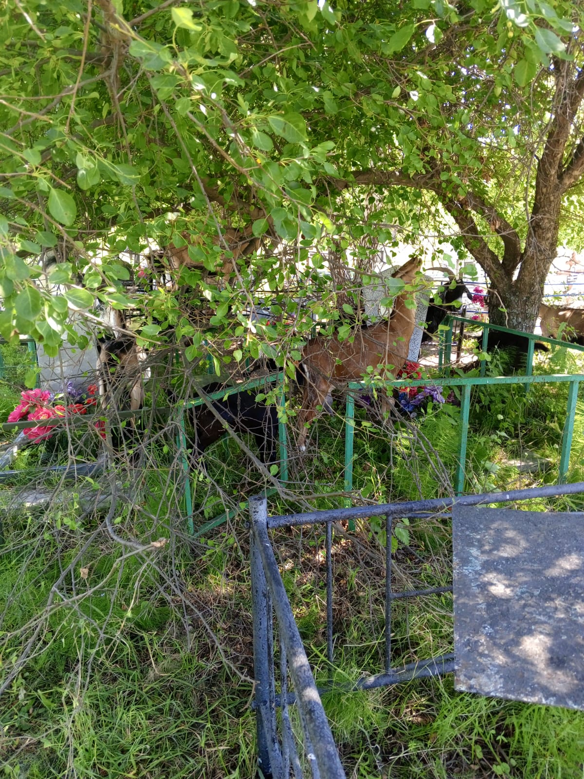 Жители Буланаша с возмущением обсуждают очередную напасть - на погосте поселка пасутся хозяйские козы. Буланашцы выкладывают снимки рогатых, поедающих траву и ветки на могилах, прыгающих по надгробиям и есть даже фото козы, напоровшейся на пик ограды, видимо, при неудачном прыжке.