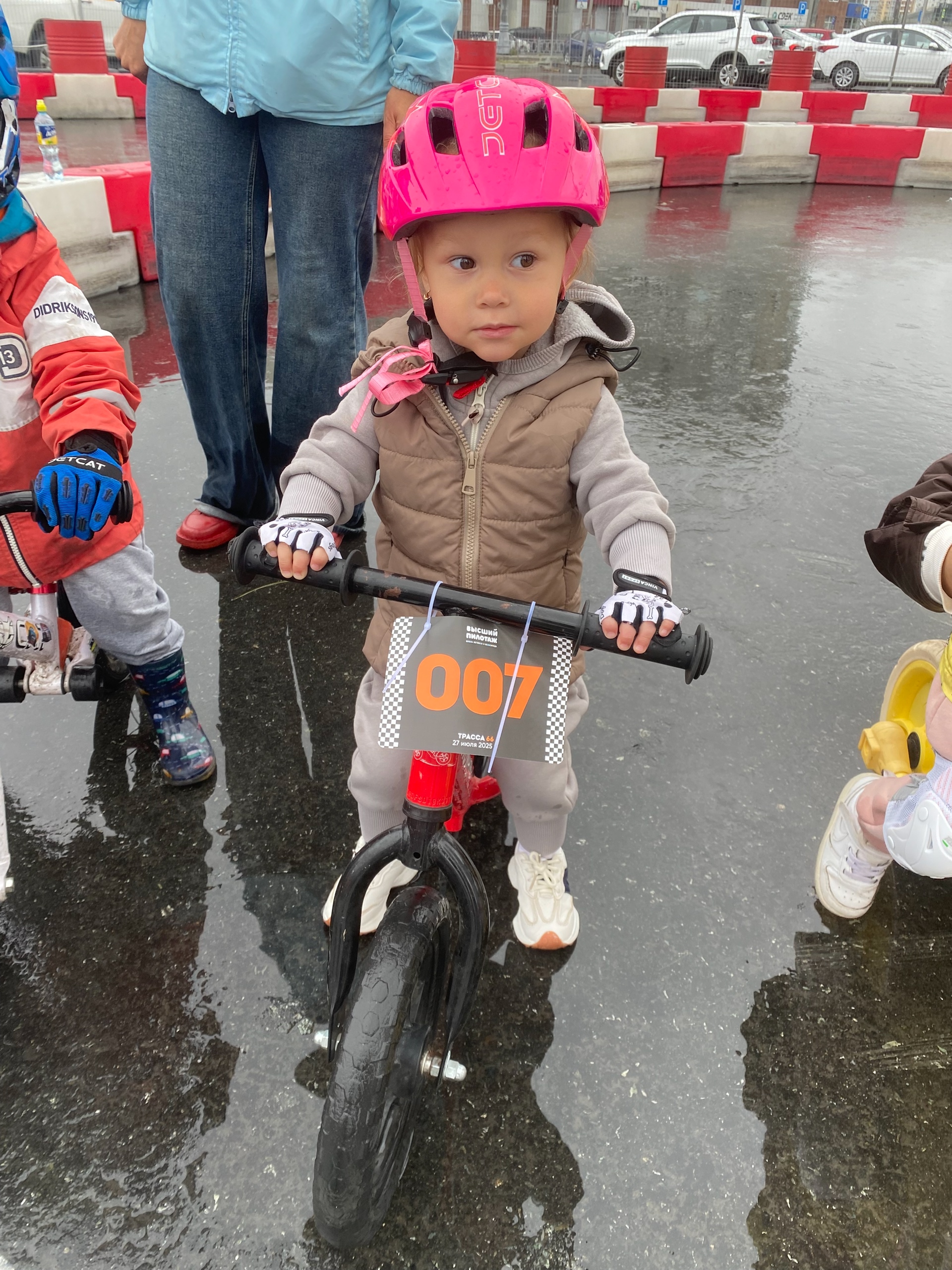 София (4 года) бросила вызов не только соперникам, но и взяла на себя двойную нагрузку, выступив в двух дисциплинах: беговел и двухколесный велосипед. На беговеле в первом квалификационном заезде София финишировала первой. Казалось, победа близка. Но спорт — это драма: во втором заезде удача временно отвернулась. Медалей на беговеле не случилось, но разве это остановит бойца? Переключение на велосипед — и снова вперед!