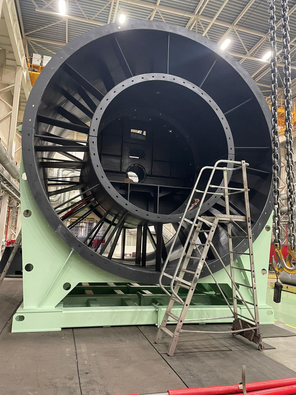 - Установка АВМ 50 состоит из двух вентиляторов главного проветривания, диаметр каждого — более пяти метров. Изготавливаем ее по заказу предприятия УГМК «Башмедь», нашего давнего партнера, — говорит главный конструктор. — Наши вентиляторы, которые устанавливают в специальном здании над шахтой, должны будут обеспечивать надежную работу вентиляционной системы в подземных выработках Подольского