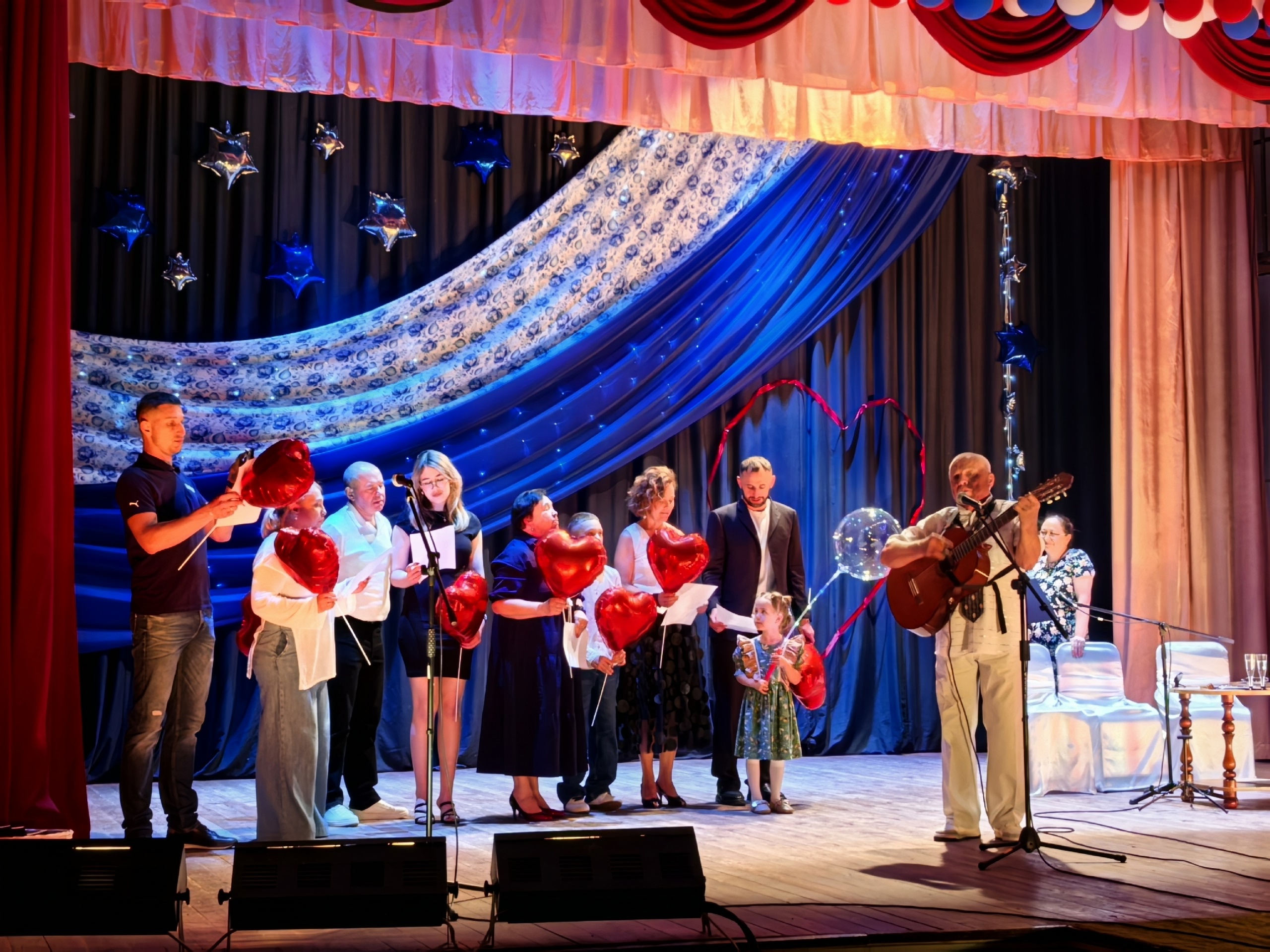 И обратная реакция не заставляет себя долго ждать — на сцене читали стихи, пропитанные любовью дочь Анна и внучка Ефросинья. А рассказать о чувствах, которые испытывает поэт к своей второй половинке помог директор ДК «Угольщиков» Павел Серебренников, исполнив песню на музыку барда и слова Ольги Лазаревой «За любовь не кори». На этих романтично-искренних нотах Владимир Иванович вынес огромный букет цветов и признался в любви своей жене Нине.
