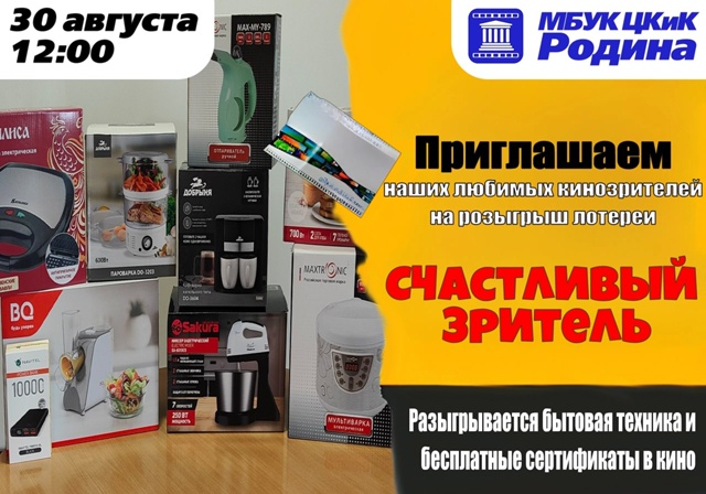 В 12 часов в ЦКиК «Родина» стартует розыгрыш призов среди зрителей. Призы розыгрыша: