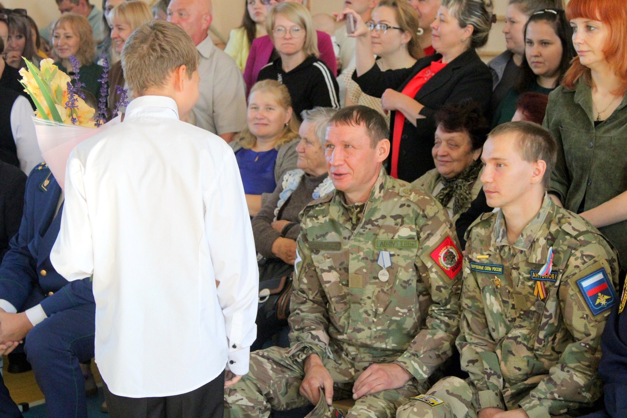 В селе Покровское поздравить учеников, педагогов и родителей в школу пришли воин СВО, прокурор, глава ТУ.