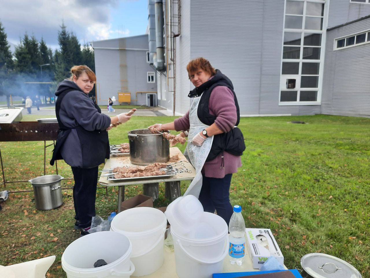 Заводские повара вышли на смену в этот день в 5 утра. Они заготовили на шашлыки 180 кг отличной свинины, нажарили 800 чебуреков, а сколько другой выпечки — и сами сказать не смогли. Тут же, у торгового ряда, можно было угоститься чаем и кофе, наливая сколько хочешь.