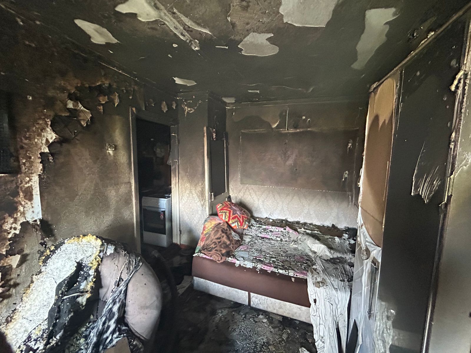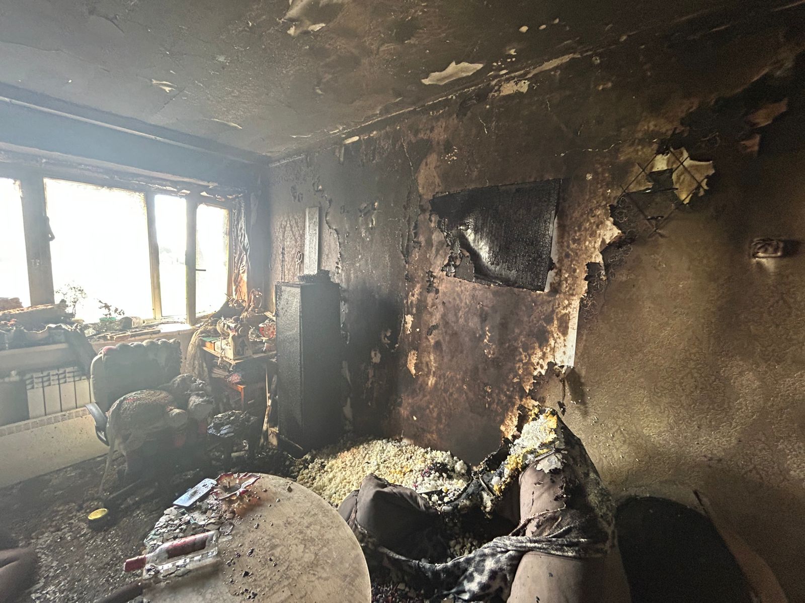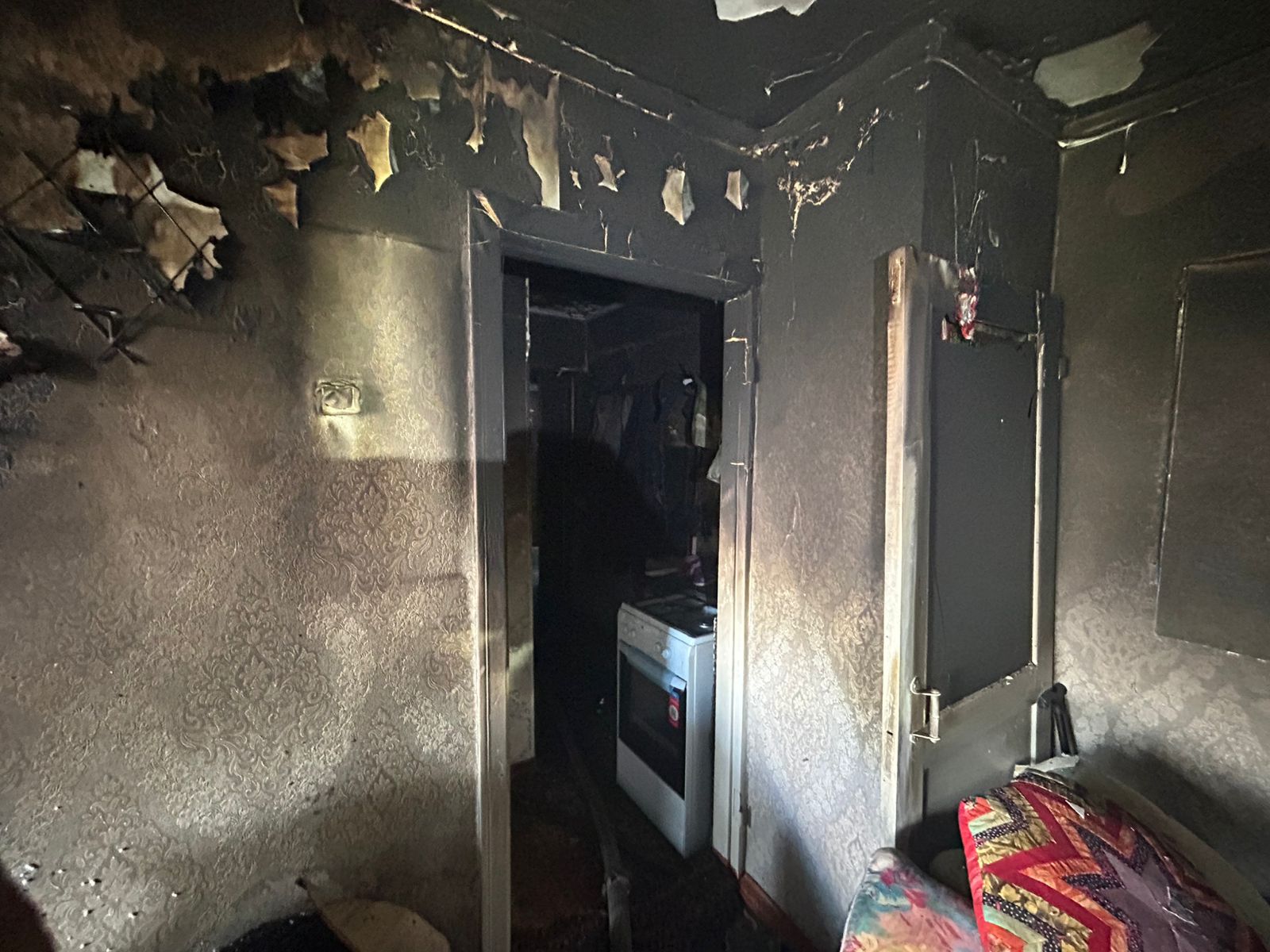 При пожаре на 10 кв. метрах пострадало домашнее имущество, стены квартиры.