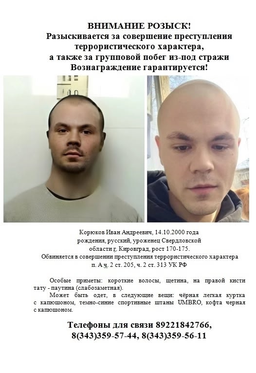 Если вы обнаружили пропажу, вскрытие домовладения и построек, если вы увидели человека, похожее на разыскиваемого, а также при обнаружении пропажи личных вещей, одежды, транспортных средств и иного имущества, просим вас сообщить любую информацию о местонахождении Крюкова* по следующим телефонам (анонимность и вознаграждение гарантируется): +79221842766, +73433595611.
