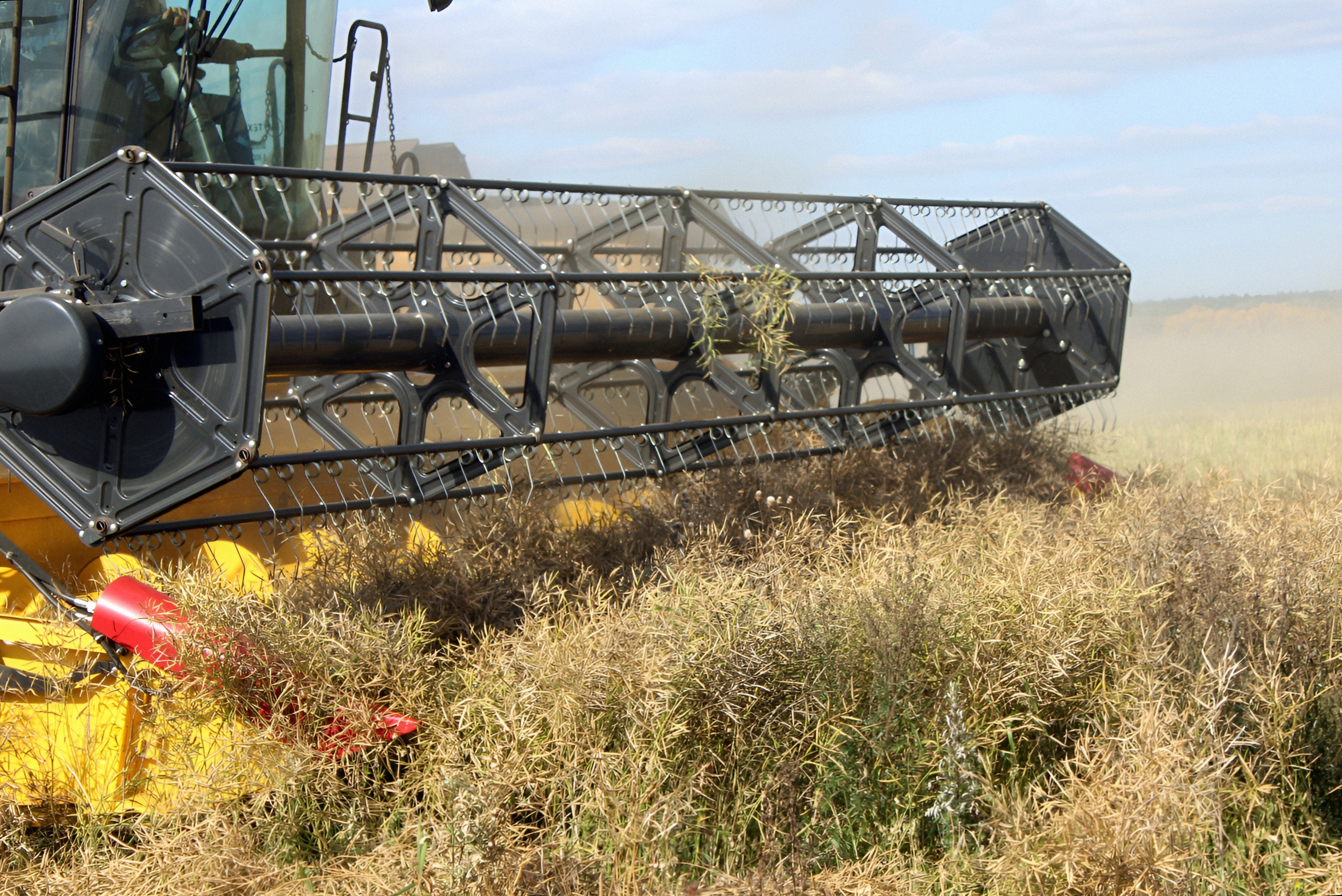 На поле на уборке рапса в эти дни работают три комбайна. Собранное увозят несколько грузовиков — агрофирма нанимает водителей в помощь. Простоев техники нет, график отработан.