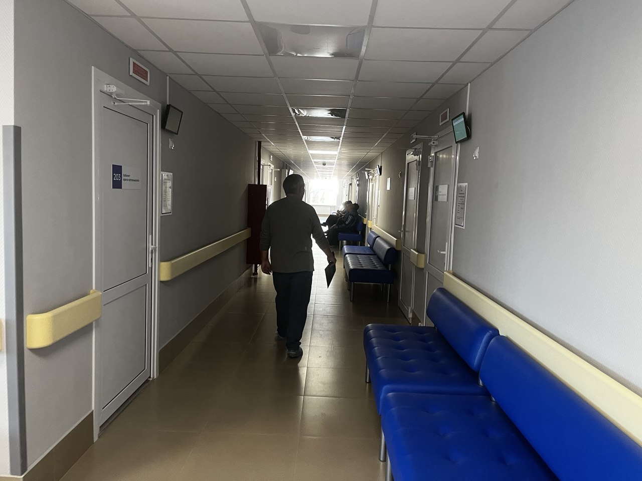 На второй этаж, в отделение терапии, уже нам пришлось стать гидами: здесь мы увидели мужчину который заблудился и не мог найти нужный ему кабинет.