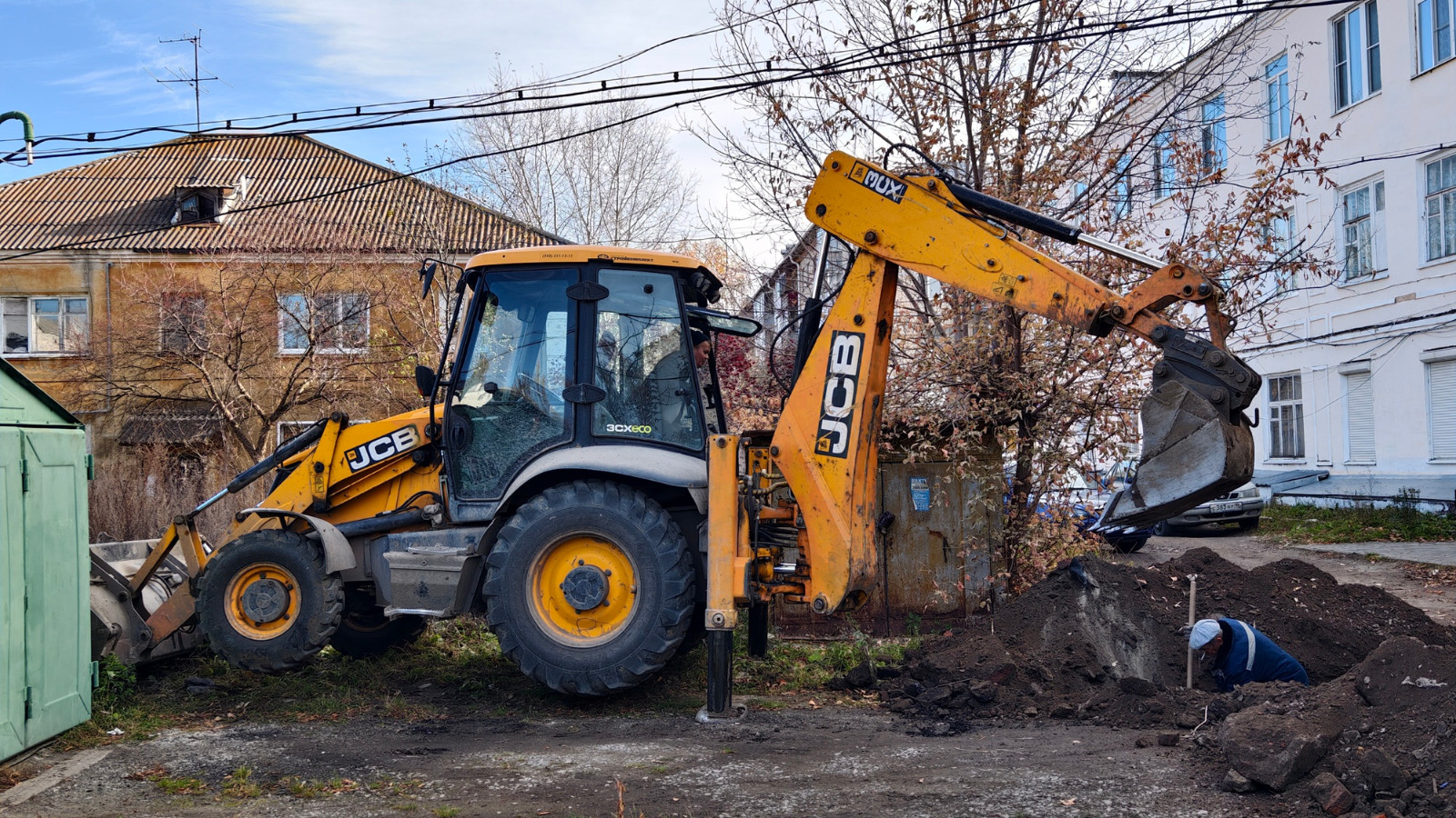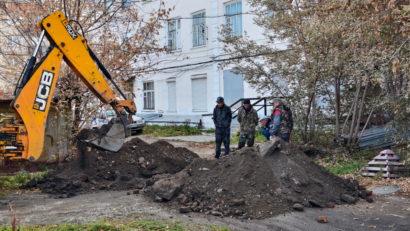 Работали над устранением порыва по ул. Мира, 9. Здесь проблему быстро решить не удалось — слишком ветхая труба дала порыв дальше. Дом к теплу подключили, но