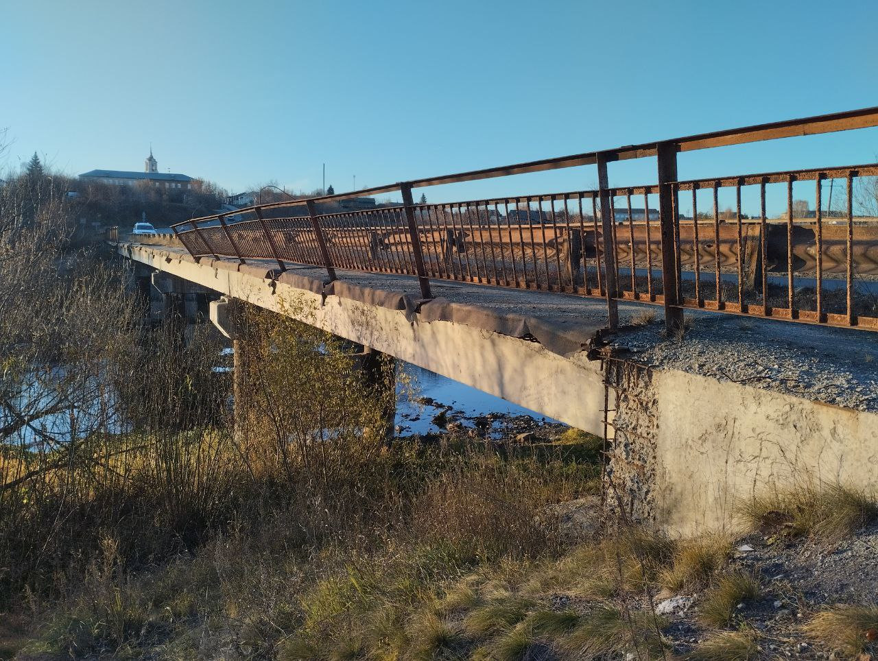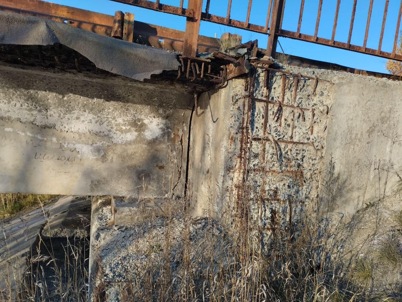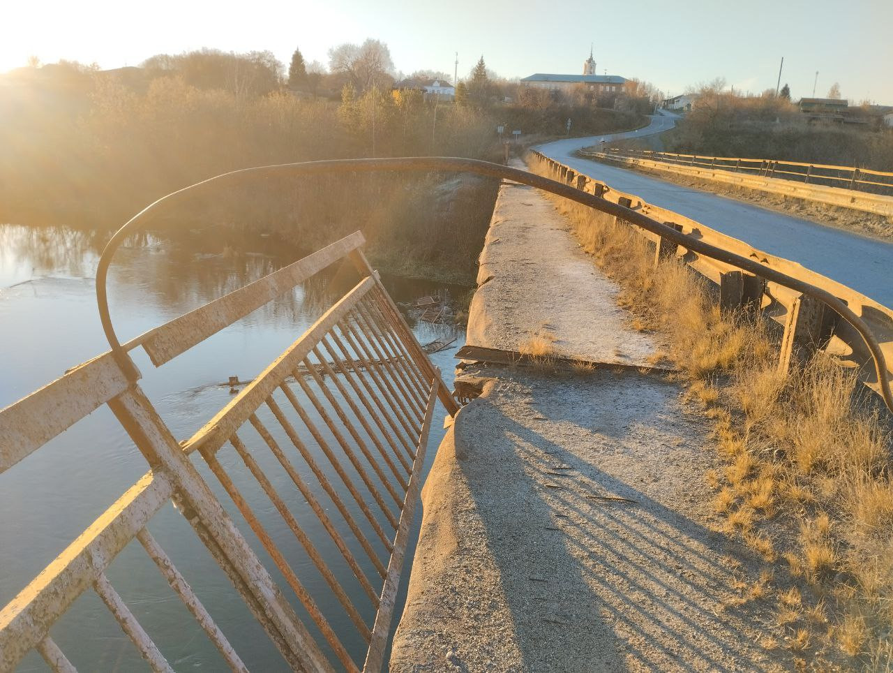Ежедневно по этому мосту, имеющему однополосное движение, проезжают несколько сотен машин, в том числе и большегрузы. И каково состояние опор и "тела" сооружения, которые мы не видим? Сколько он еще продержится, если даже металлические перила падают от ветхости? Недалеко и до трагедии!