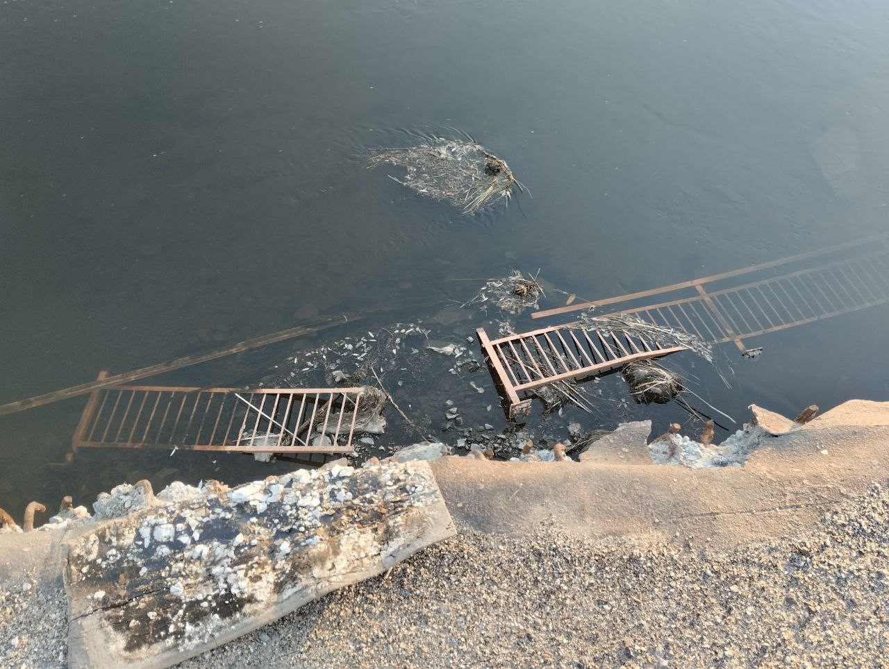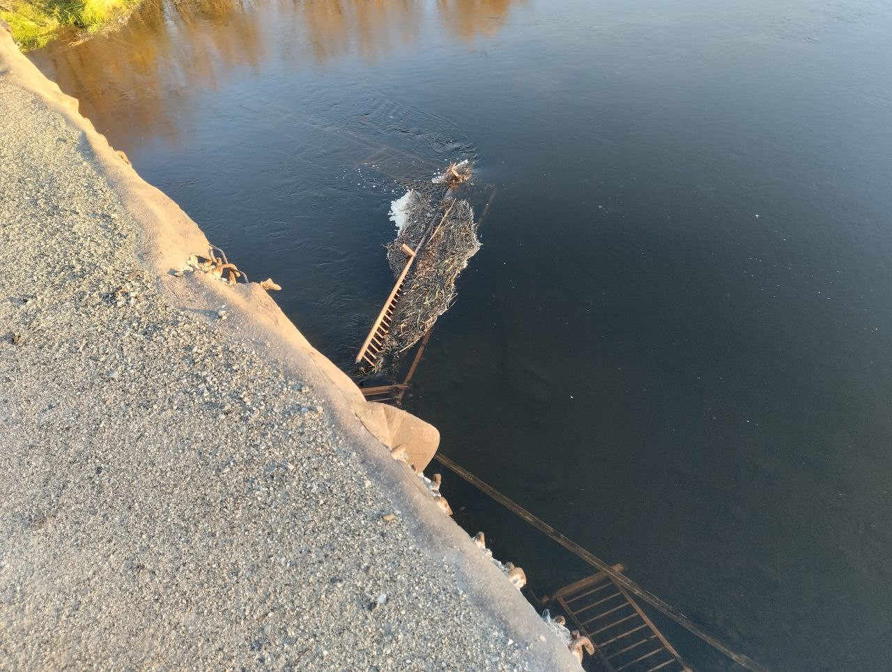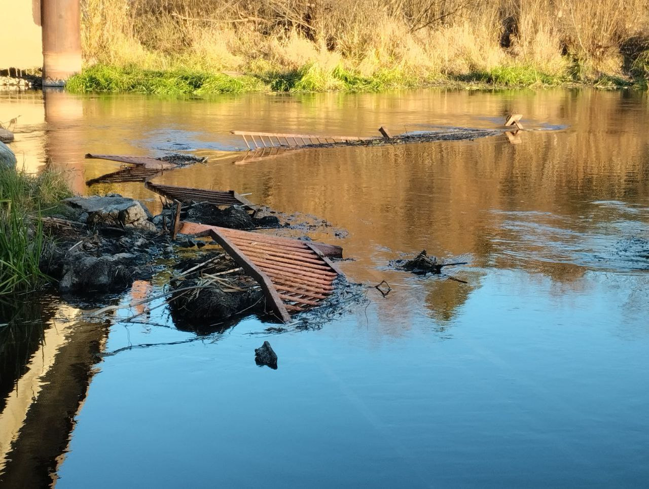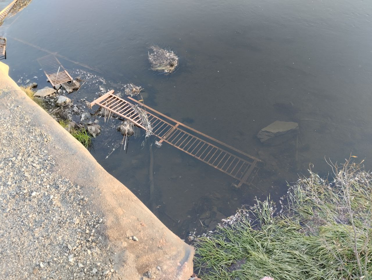 Две недели назад в реку упали металлические перила ограждения пешеходной дорожки. Арматура, на которой они держались, сгнила. Теперь часть пешеходной части моста - без защиты.