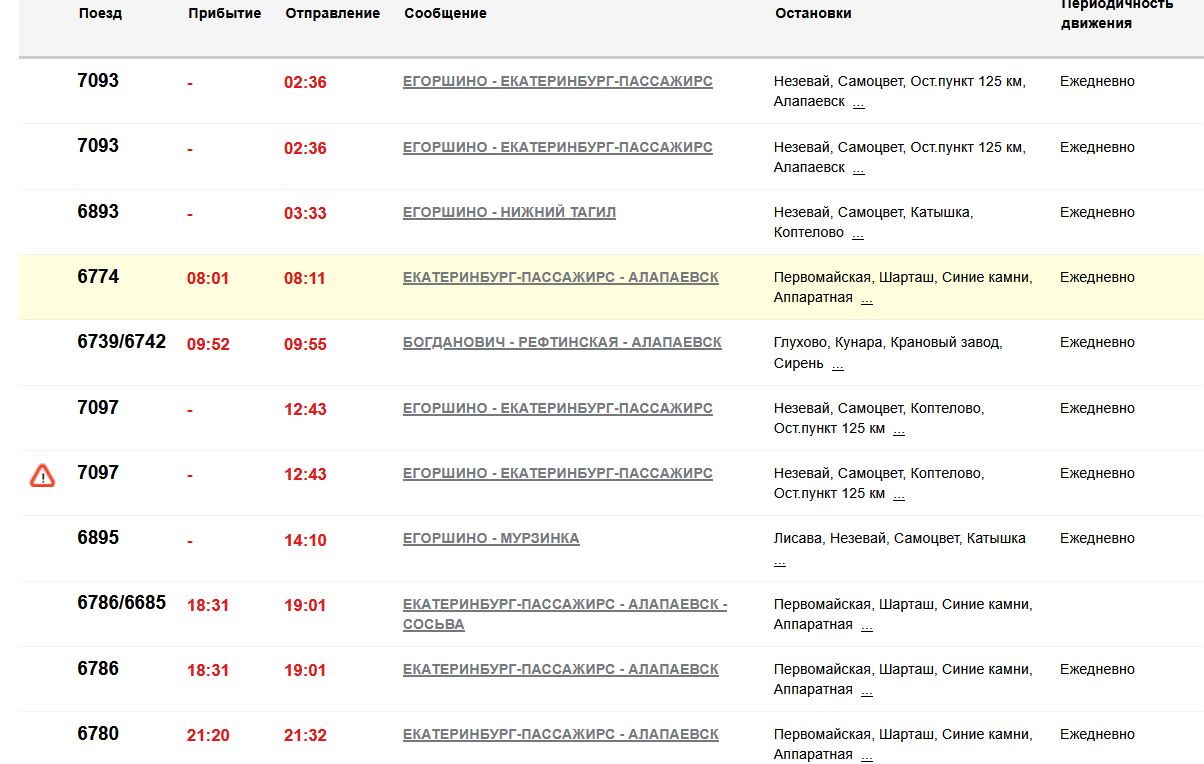 Свердловская железная дорога просит пассажиров при планировании поездки уточнять расписание.