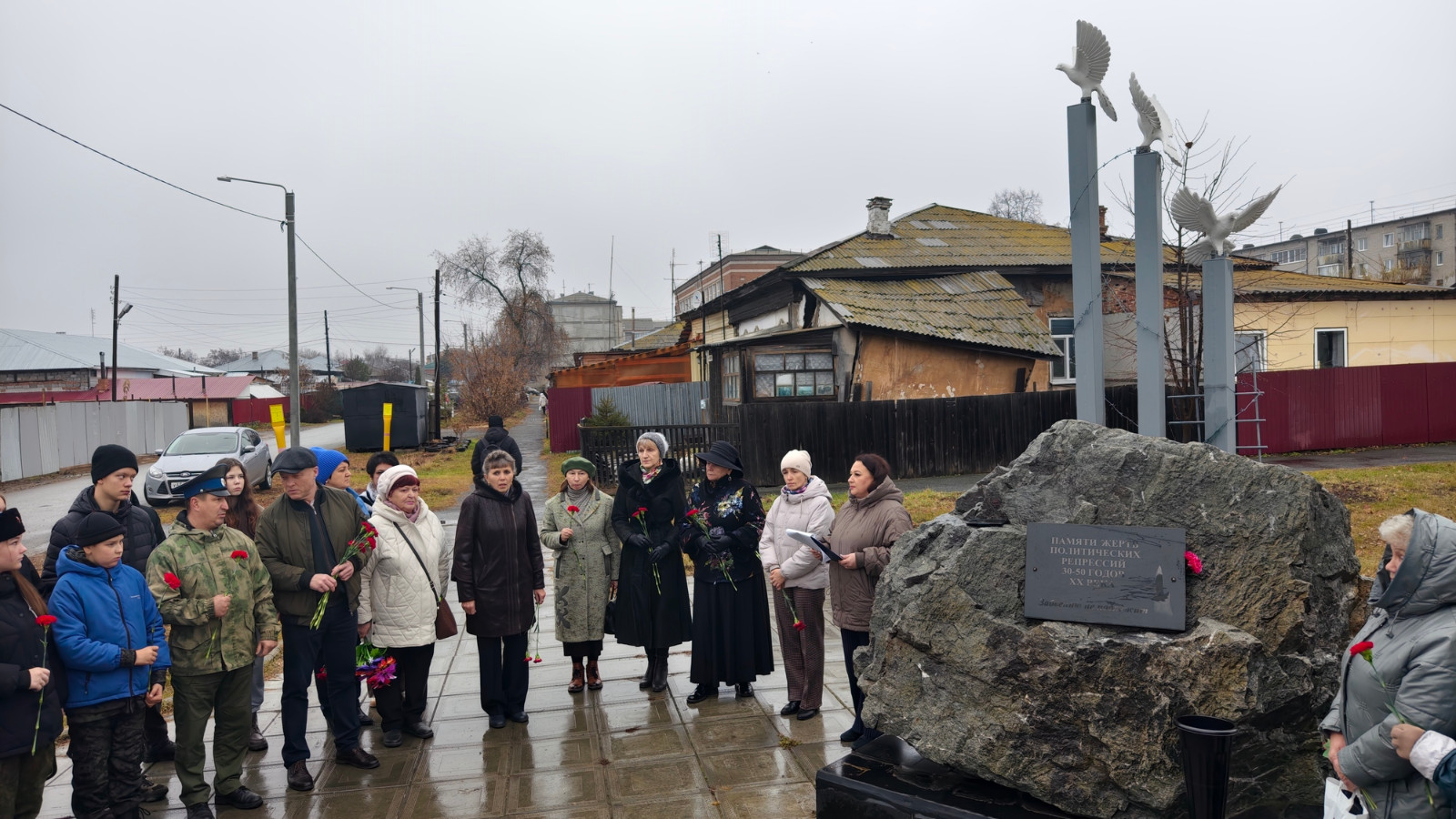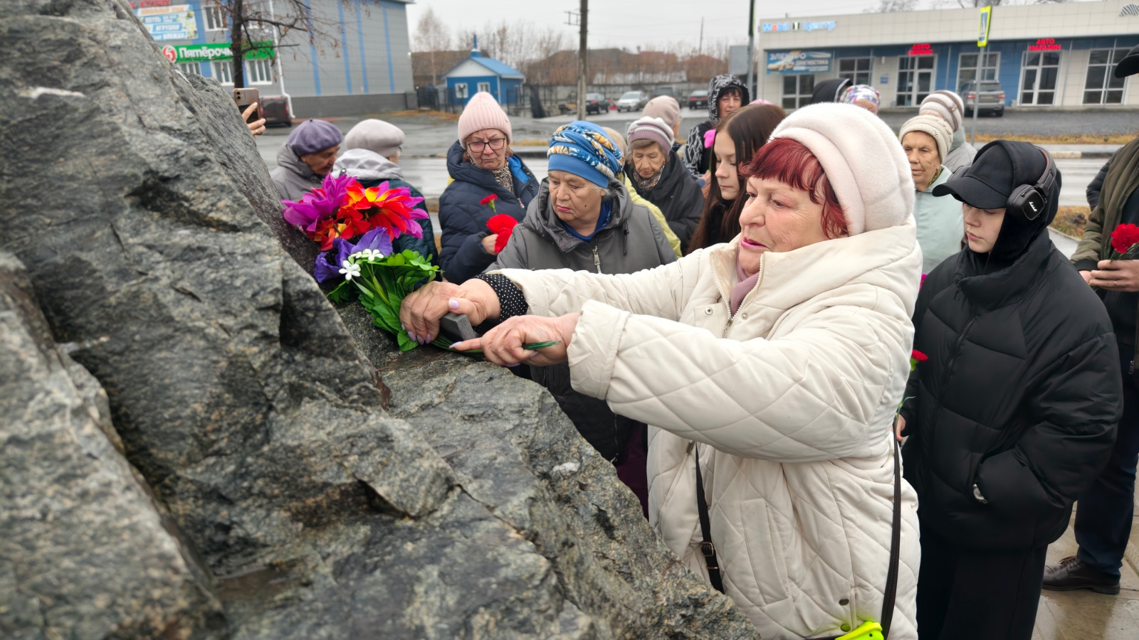 После минуты молчания красные гвоздички легли к памятному камню жертвам репрессий со словами «Забвению не подлежит» на табличке.