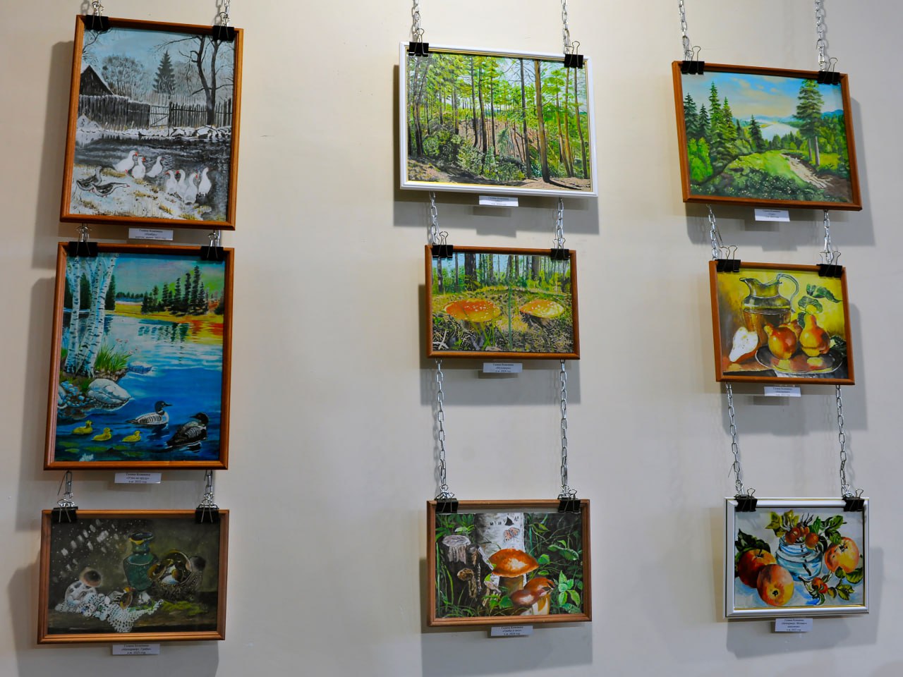 А полюбоваться было на что. Прежде всего, это выставка картин Галины Анатольевны Кожевиной «Как прекрасен этот мир…». Здесь пейзажи, натюрморты, анималистика. У Галины Анатольевны есть уже опыт работы фотографом. Это позволило ей развить чувство композиции, умение работать с цветом. После появилось желание заняться рисованием и живописью.