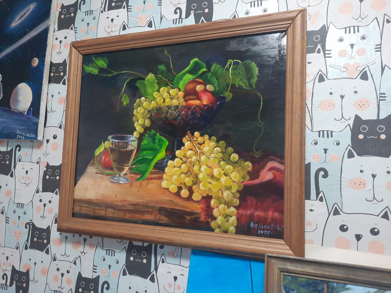 — Нравится писать натюрморты. Здесь мне главный помощник — жена Нина. Мы вместе придумываем, что нарисовать. Вместе раскладываем элементы натюрморта, выбираем фон. В общем, это наша совместная работа, так как натюрморты я пишу с натуры. На последнем конкурсе, проводимом районным Советом ветеранов, мой натюрморт занял первое место.