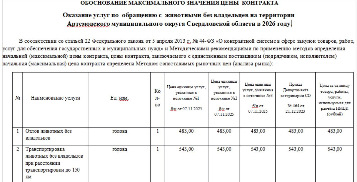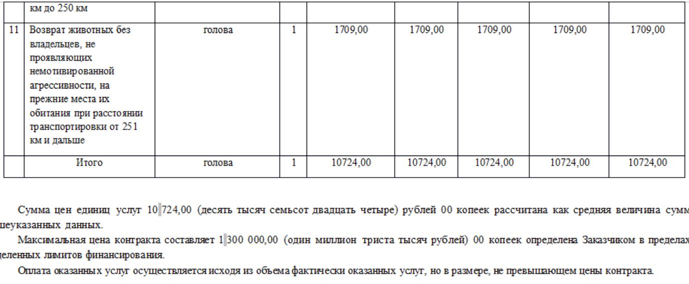 На аукцион заявился один участник и проектом контракта за отлов и остальные услуги ему должны будут заплатить начально предусмотренную (максимальную) цену — 10 724 рублей за одну голову.