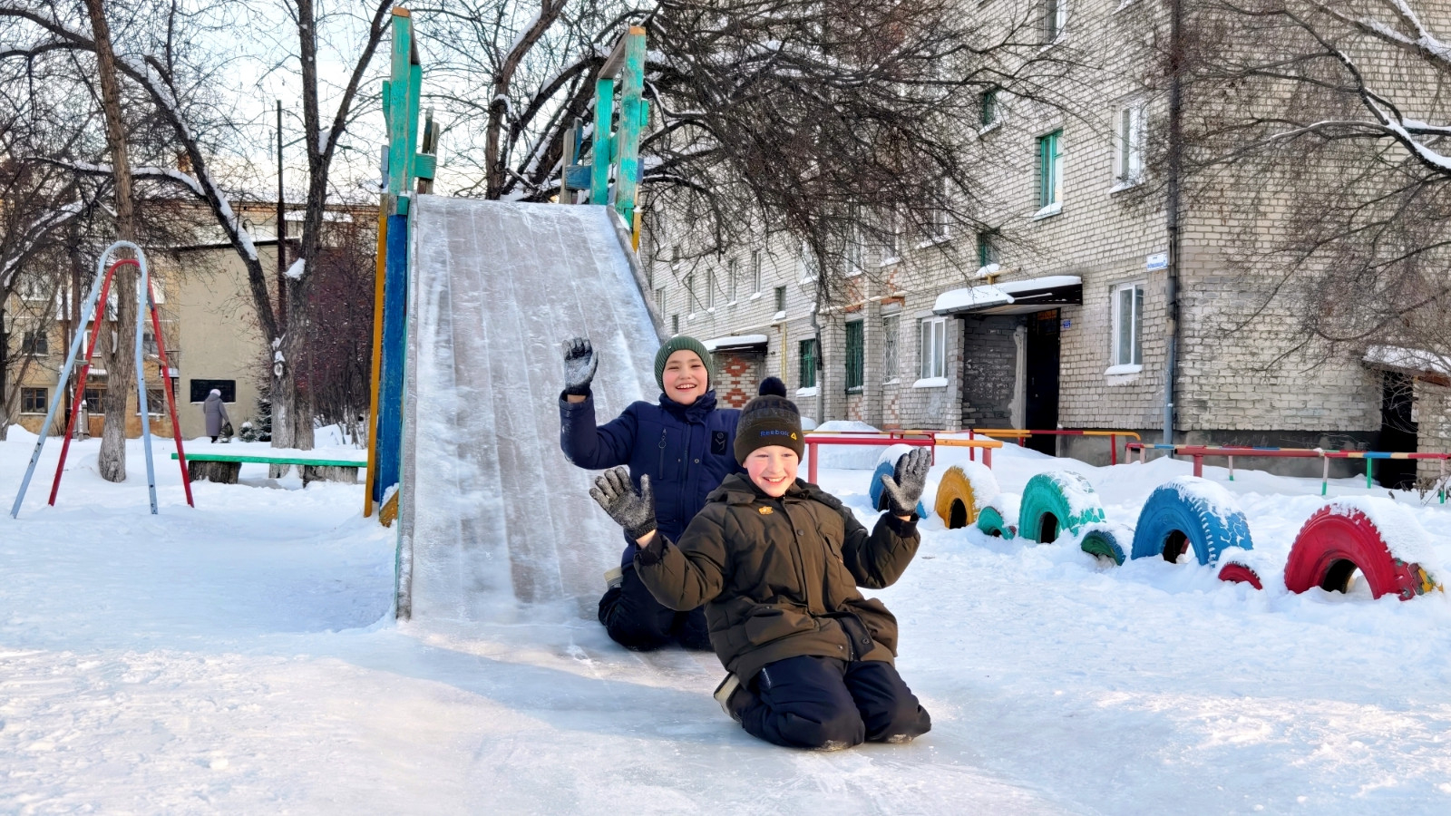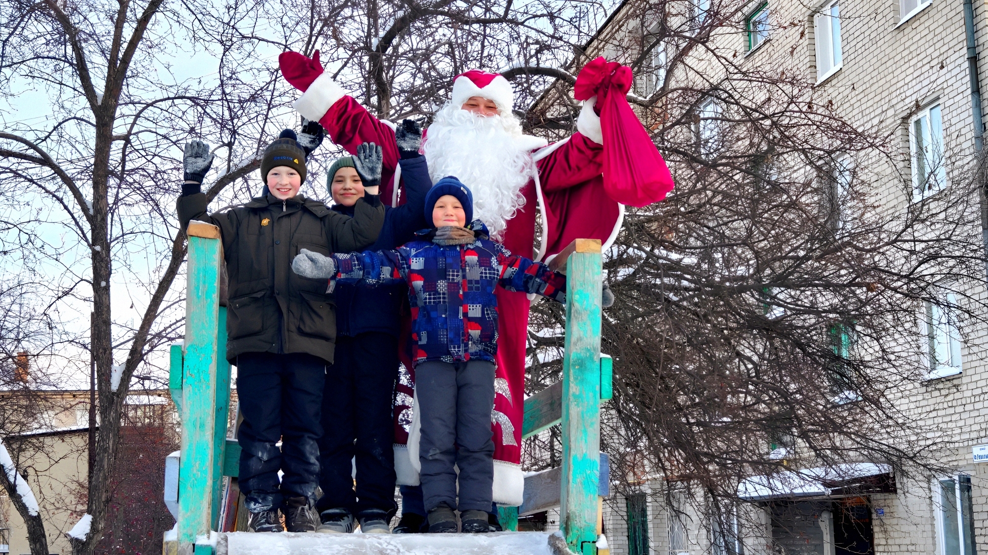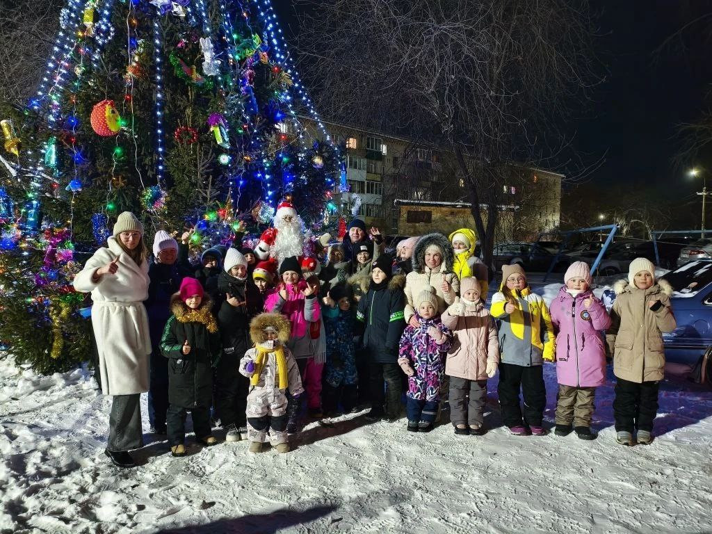 Во дворе дома по ул. Февральской Революции в Буланаше жители установили елочку. И на горке здесь можно покататься! Дед Мороз тоже с ребятами с нее съехал. Фото: Михаил Дудин, «ЕВ»