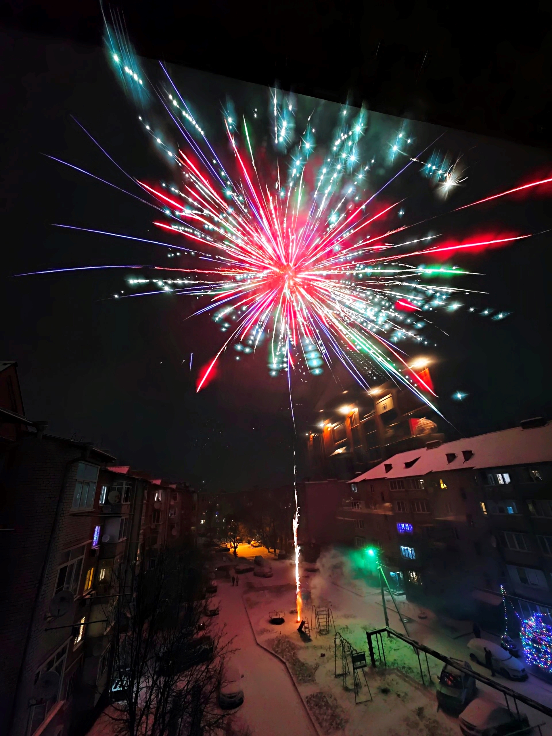 Недолгий, но красивый. Таким был фейерверк, запущенный жителями в новогоднюю ночь.