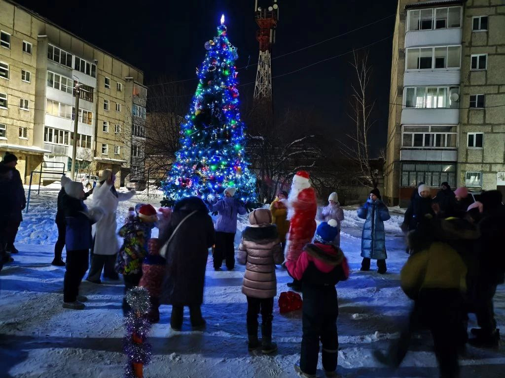 Депутат Игорь Попов подарил настоящий праздник жителям станции, установив за свой счет четыре прекрасные елки во дворах многоквартирных домов. Елочки стали центрами притяжения для веселых забав детей и взрослых. Фото: Игорь Николаев.