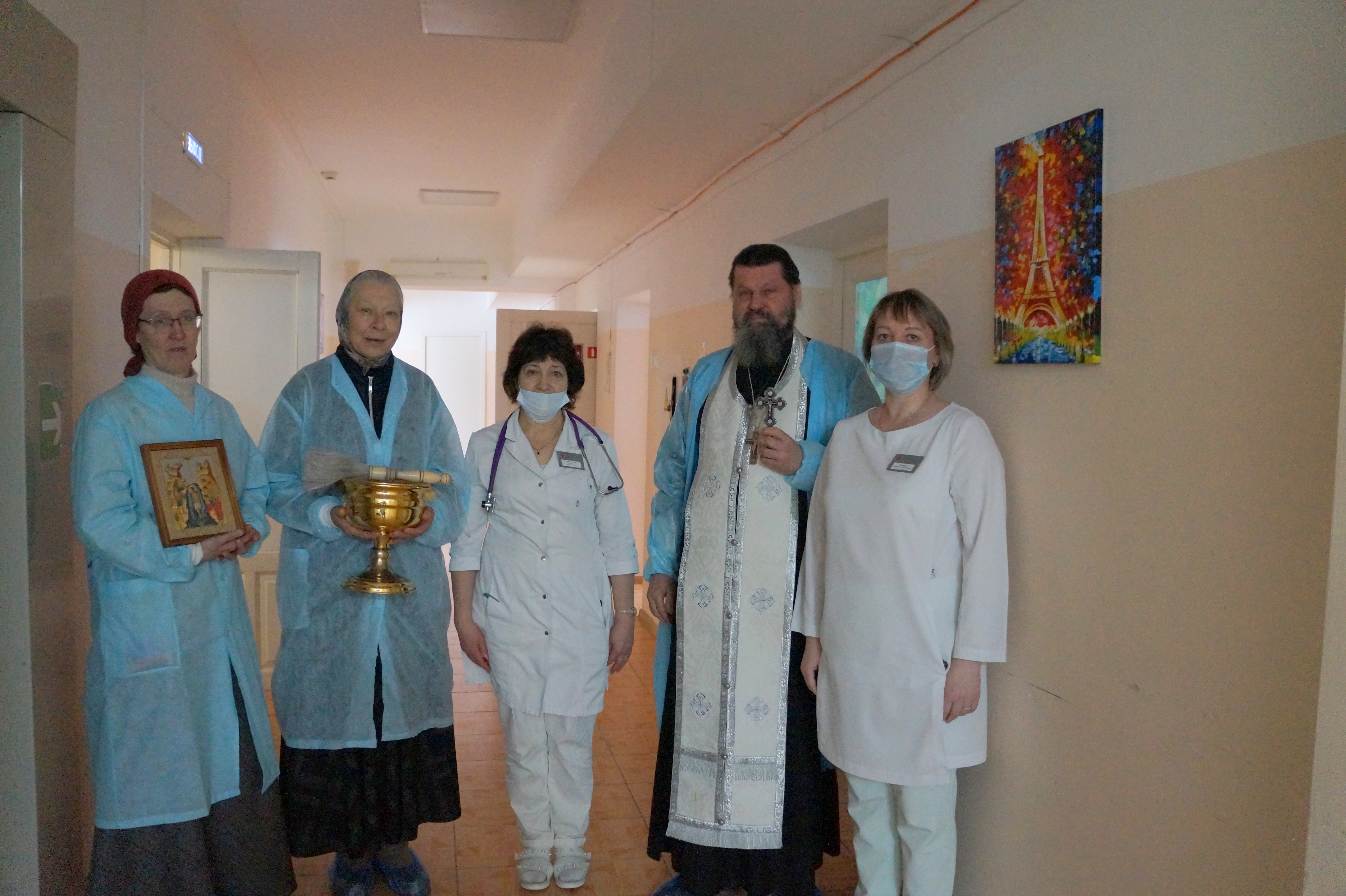 Также батюшка пожелал всем, находящимся в стационаре на лечении, скорейшего выздоровления, а сотрудникам помощи Божией в трудах. Сотрудники прихода раздали всем желающим духовную литературу о празднике.