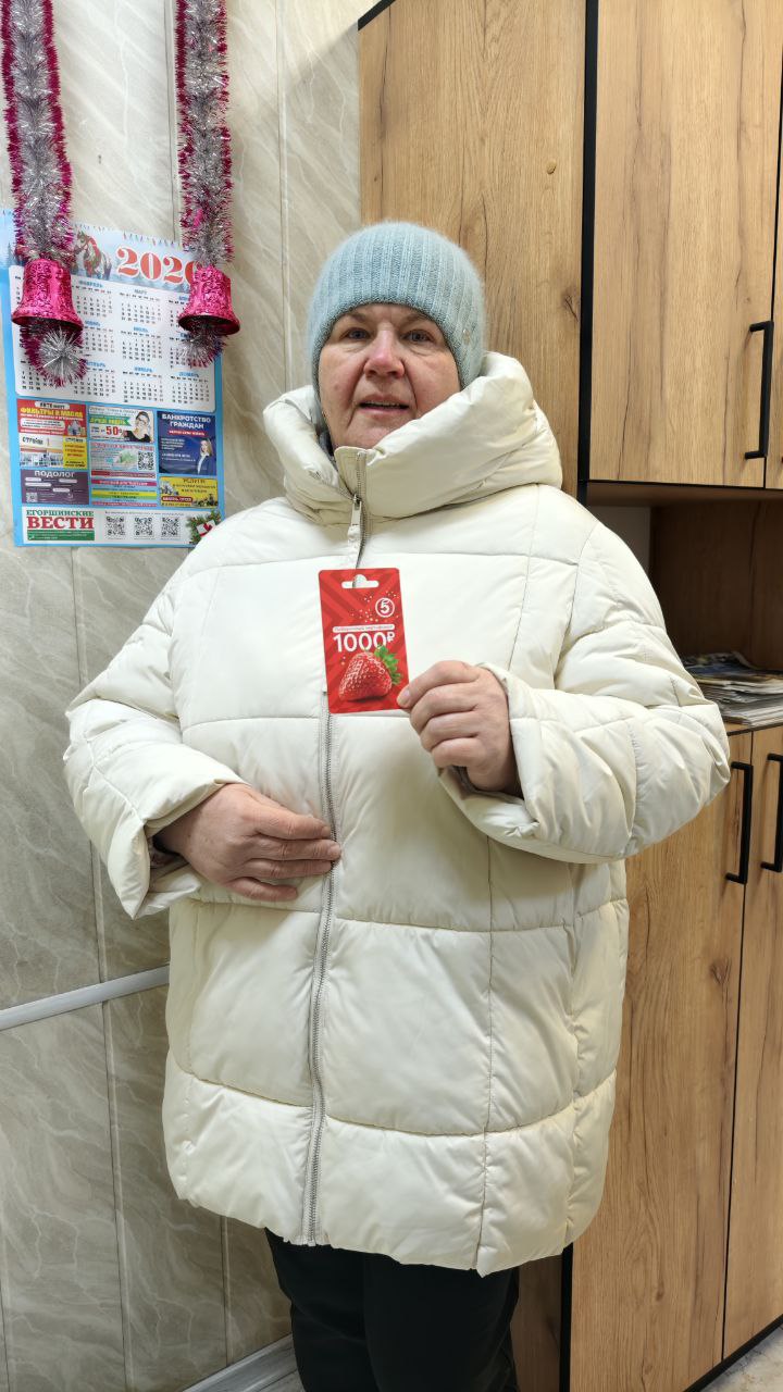 А пока на третьем снимке — еще один победитель нашего завершившегося в прошлом году фотоконкурса «Мое воспоминание из детства». Светлана Борисовна Лобанова получила от «Егоршинских вестей» сертификат на 1000 рублей в продуктовый магазин.
