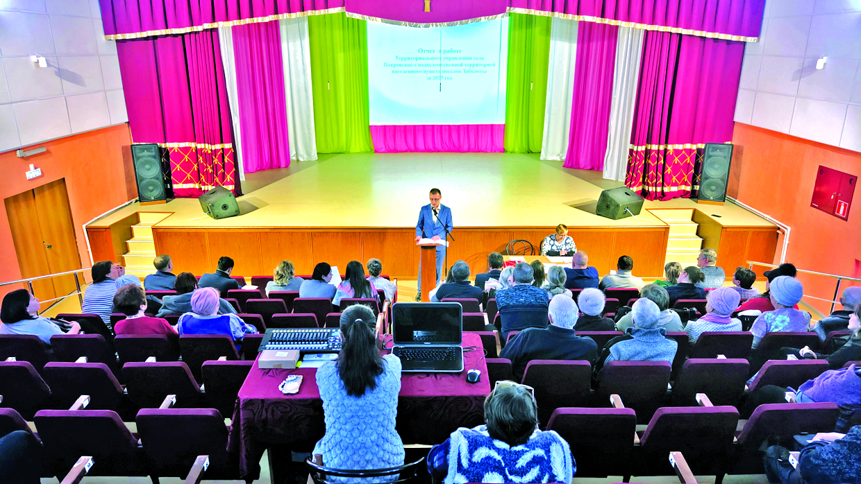 Отчетный доклад руководитель ТУ села Андрей Ольков начал с цифр. В состав территориального управления входит село Покровское и поселок Заболотье. Их общая площадь составляет 779 гектаров.
