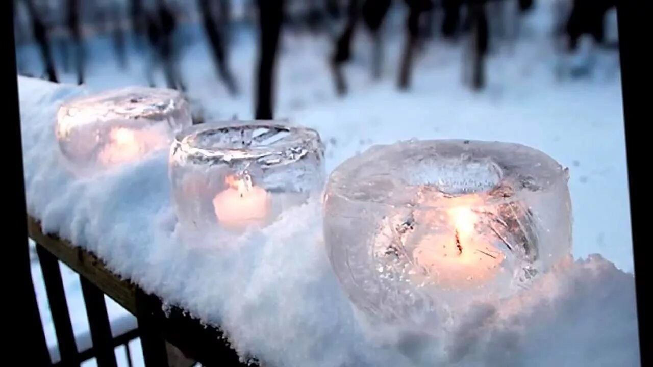 Когда стенки достаточно затвердеют, аккуратно переверните ведро вверх дном — жидкость вытечет, оставив красивую прозрачную форму с полостью внутри. Теперь остается лишь поставить внутрь свечу или маленький светодиодный светильник. Размер готового фонарика будет зависеть от величины исходной емкости. Эти ледяные светильники будут радовать глаз всю зиму, создавая особую праздничную атмосферу.