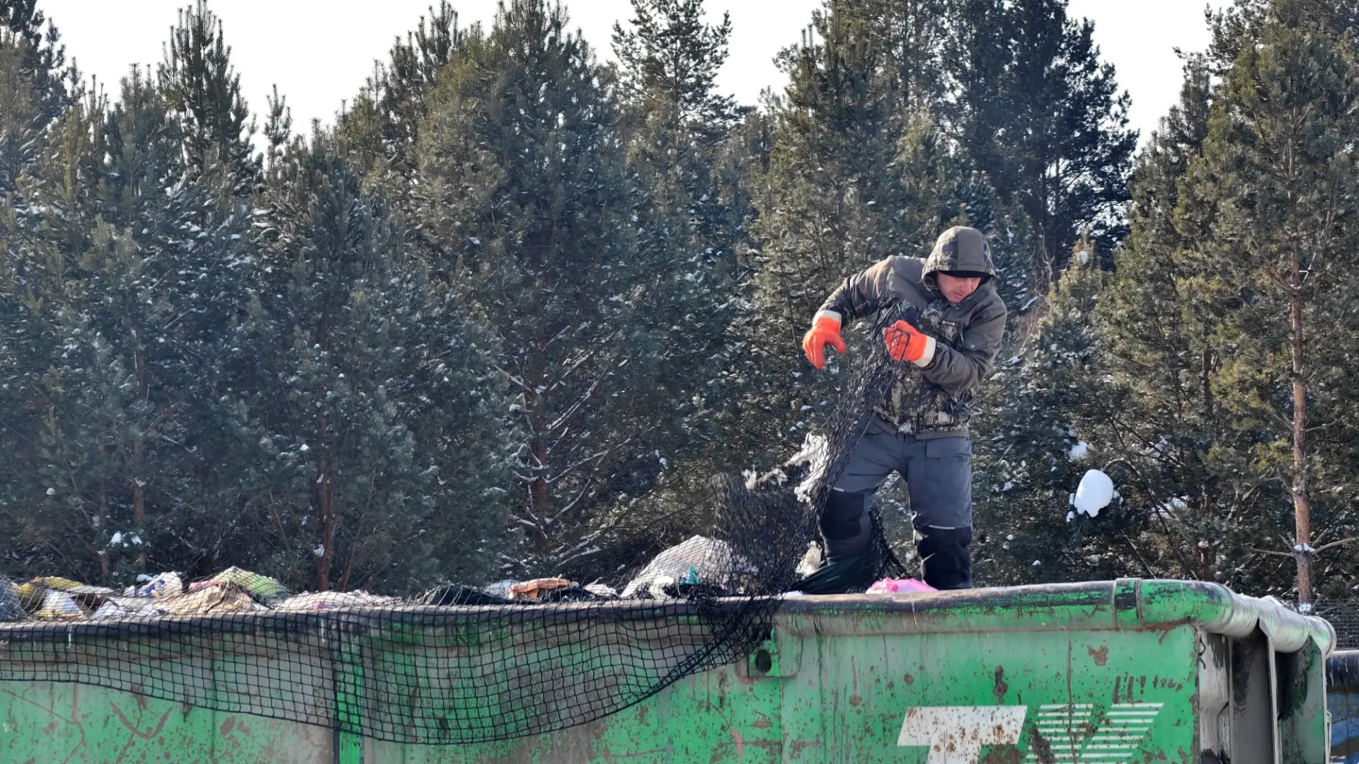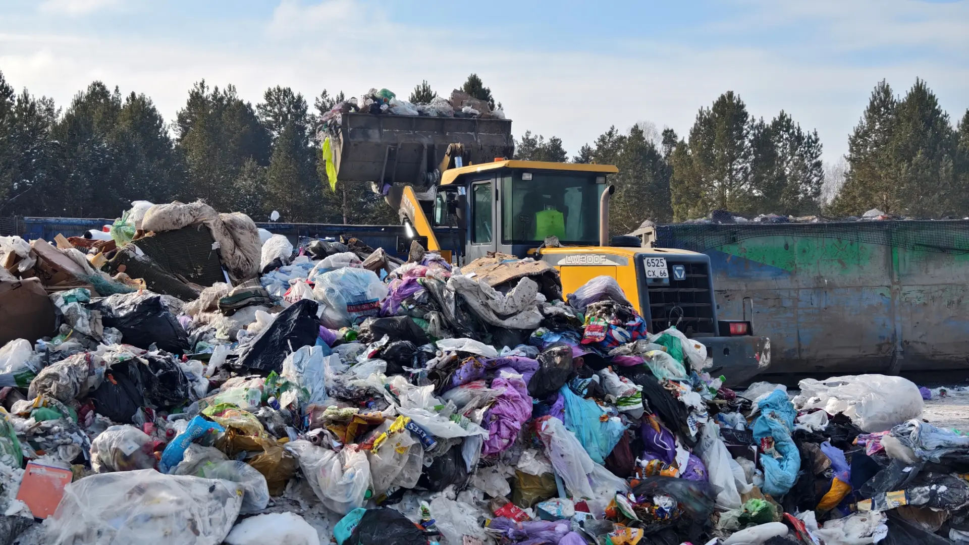 Сегодня, 6 марта, журналистам местных СМИ продемонстрировали, как с площадки убирают мусор, который накануне был высыпан из мусоровоза на землю, и загружают заполненные контейнеры на грузовик.