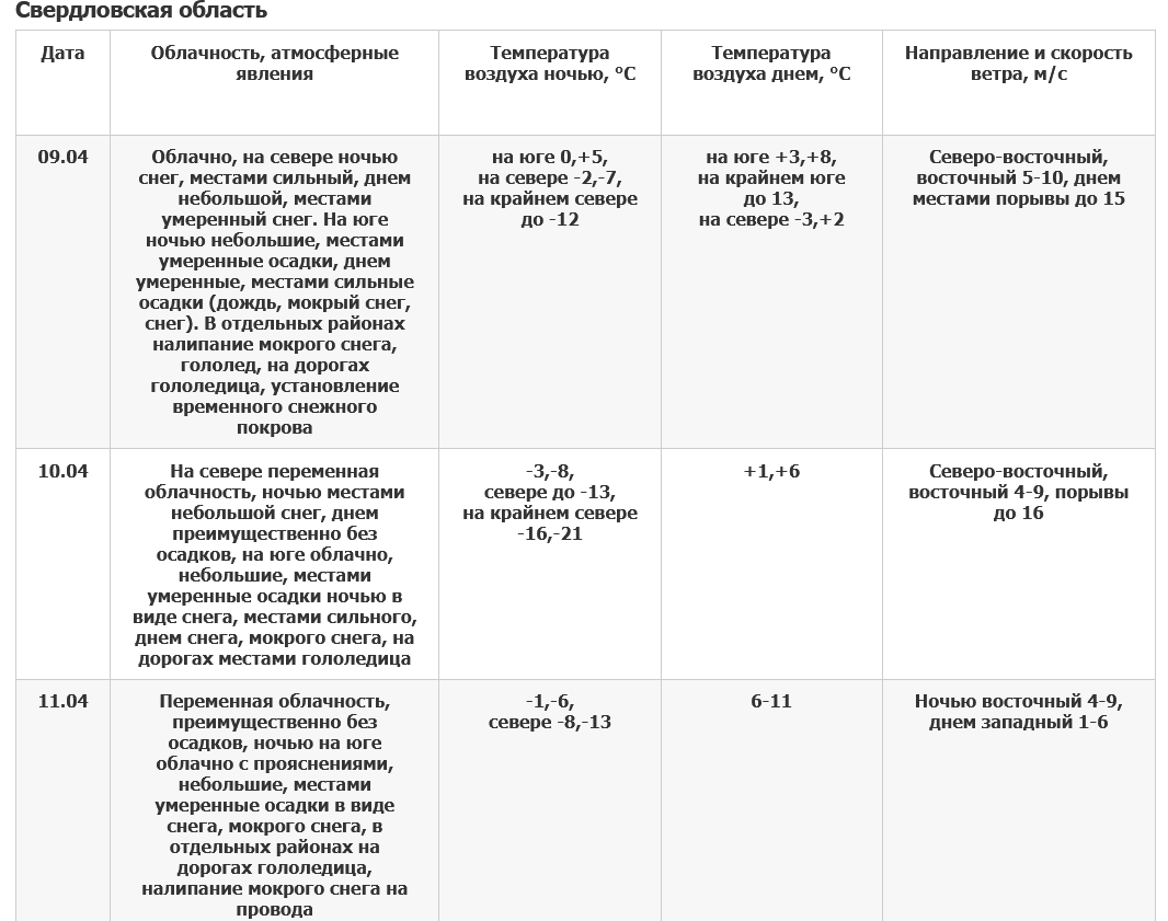 9 апреля в Свердловской области ожидаются дождь, мокрый снег, гололедные явления — предупреждает МЧС.