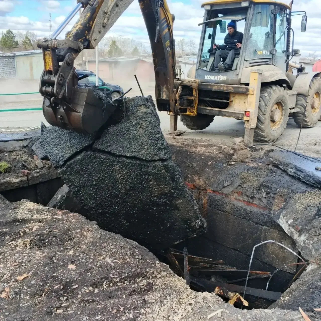 На время большую яму прикрыли — пиломатериалом для этого помог предприниматель Сергей Уймин.