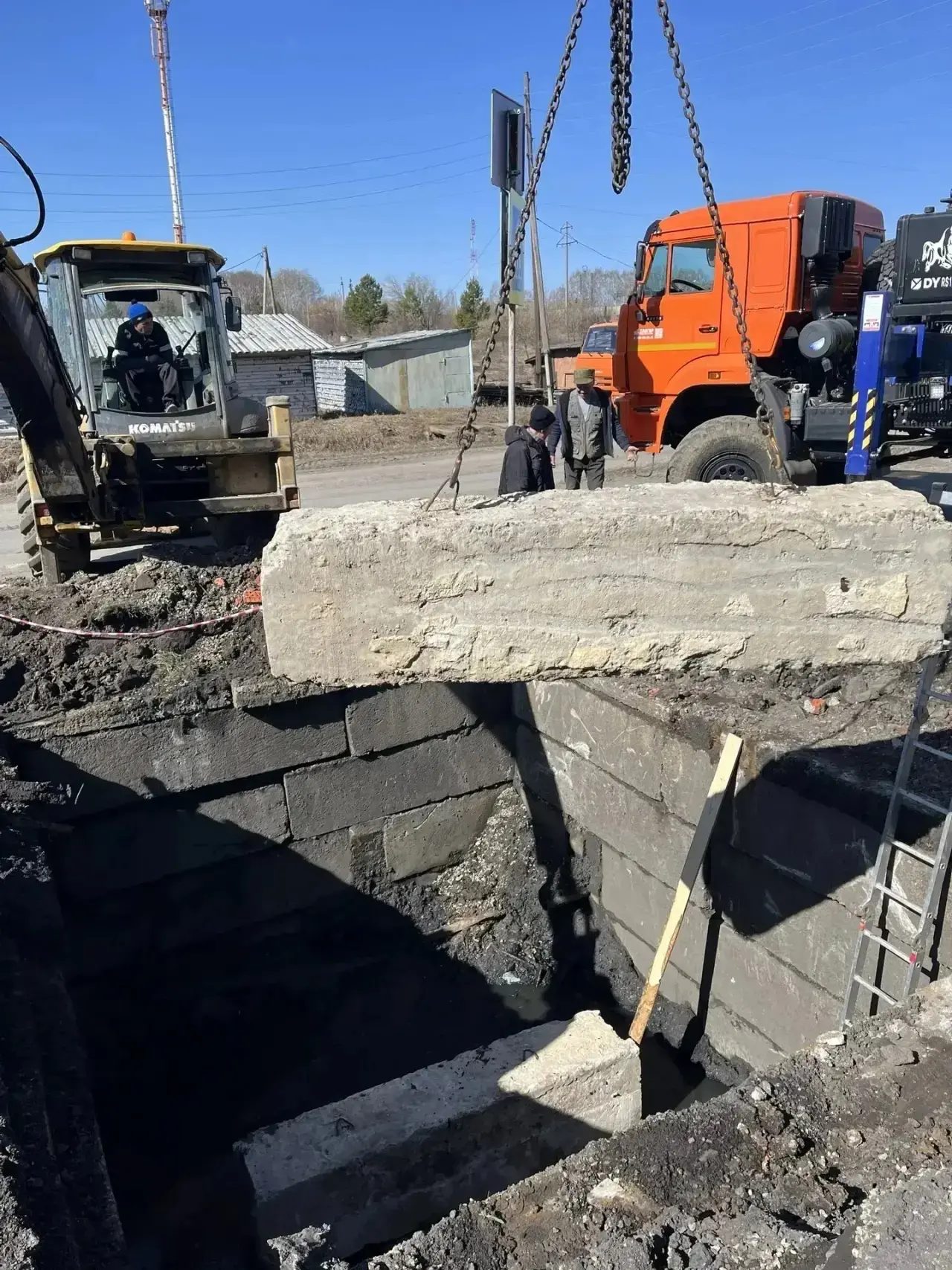 Во время ремонта коммунальщики вычистили яму, уложили перемычки из фундаментных блоков и плиты перекрытия, очистили и благоустроили территорию.