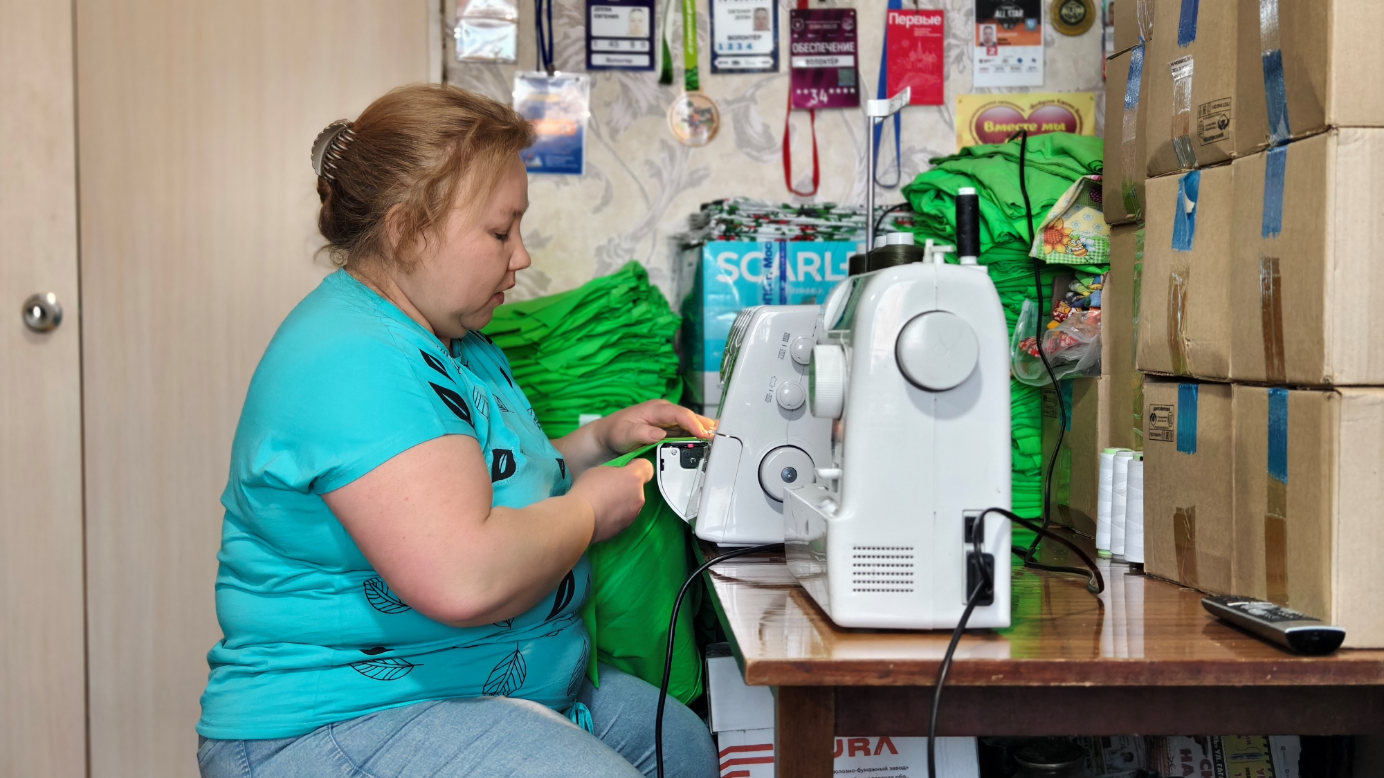 На следующий день она напекла пирожков и принесла их на отправку. Затем начала шить тканевые сумки, чтобы ребята могли складывать туда необходимые в дороге вещи: мыло, зубные щетки, носки, трусы.