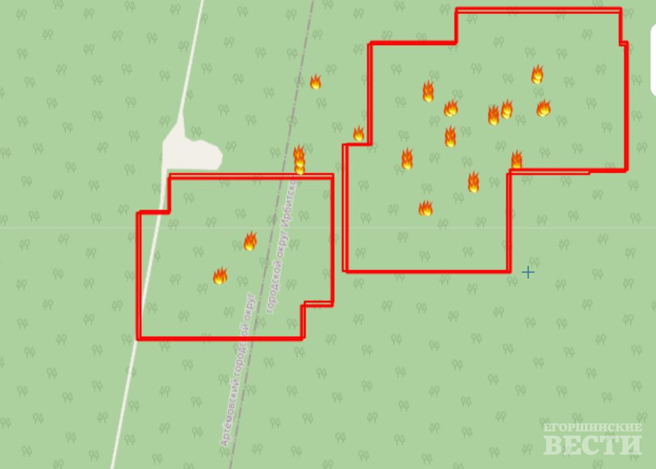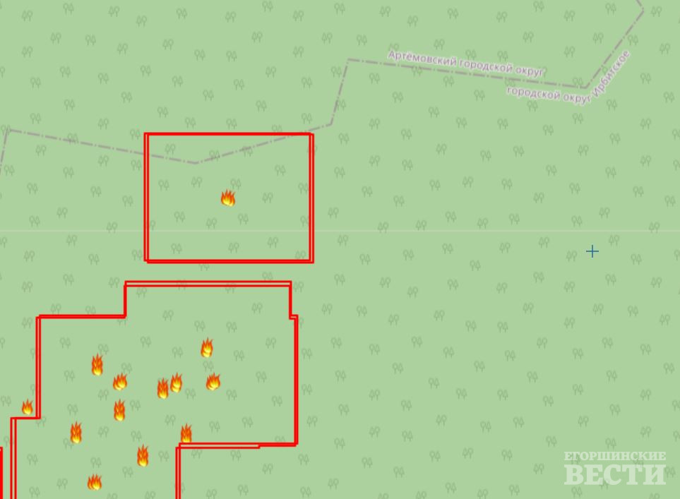 Карта пожаров на утро 6 мая (показаны пожары за последние 24 часа). На ней видно, что огонь перешел на территорию Артемовского городского округа.