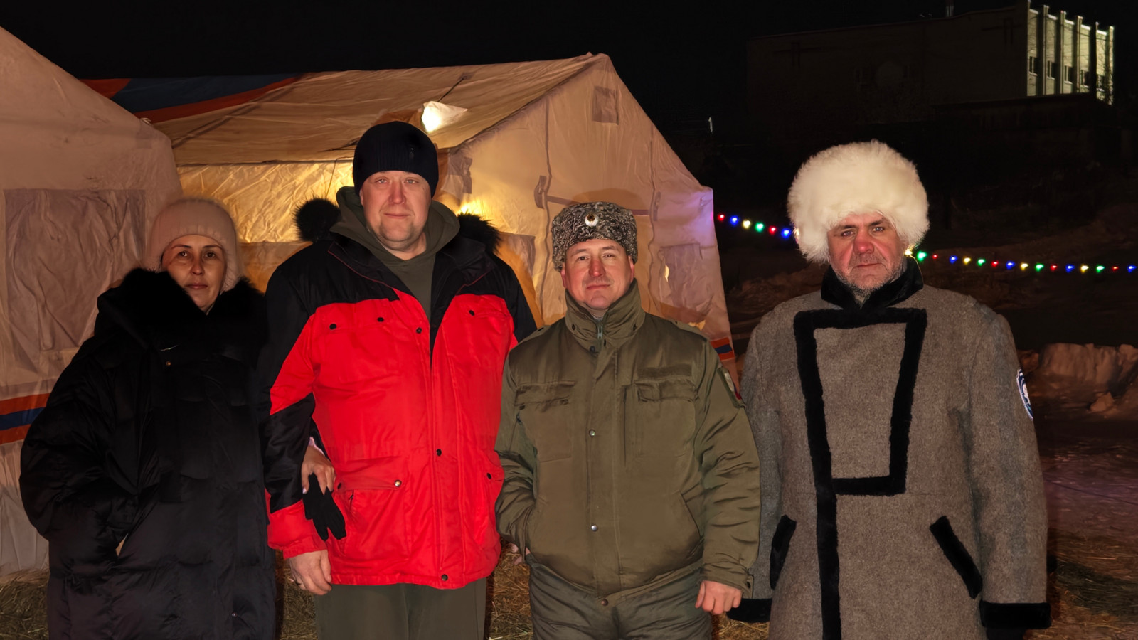 Сотрудники 54 ПСО и областного Отряда противопожарной службы № 16, работники предпринимателя Николая Галочкина подготовили купель и подходы к ней, палатку с обогревом для переодевания, казаки украсили место купания красивыми гирляндами.