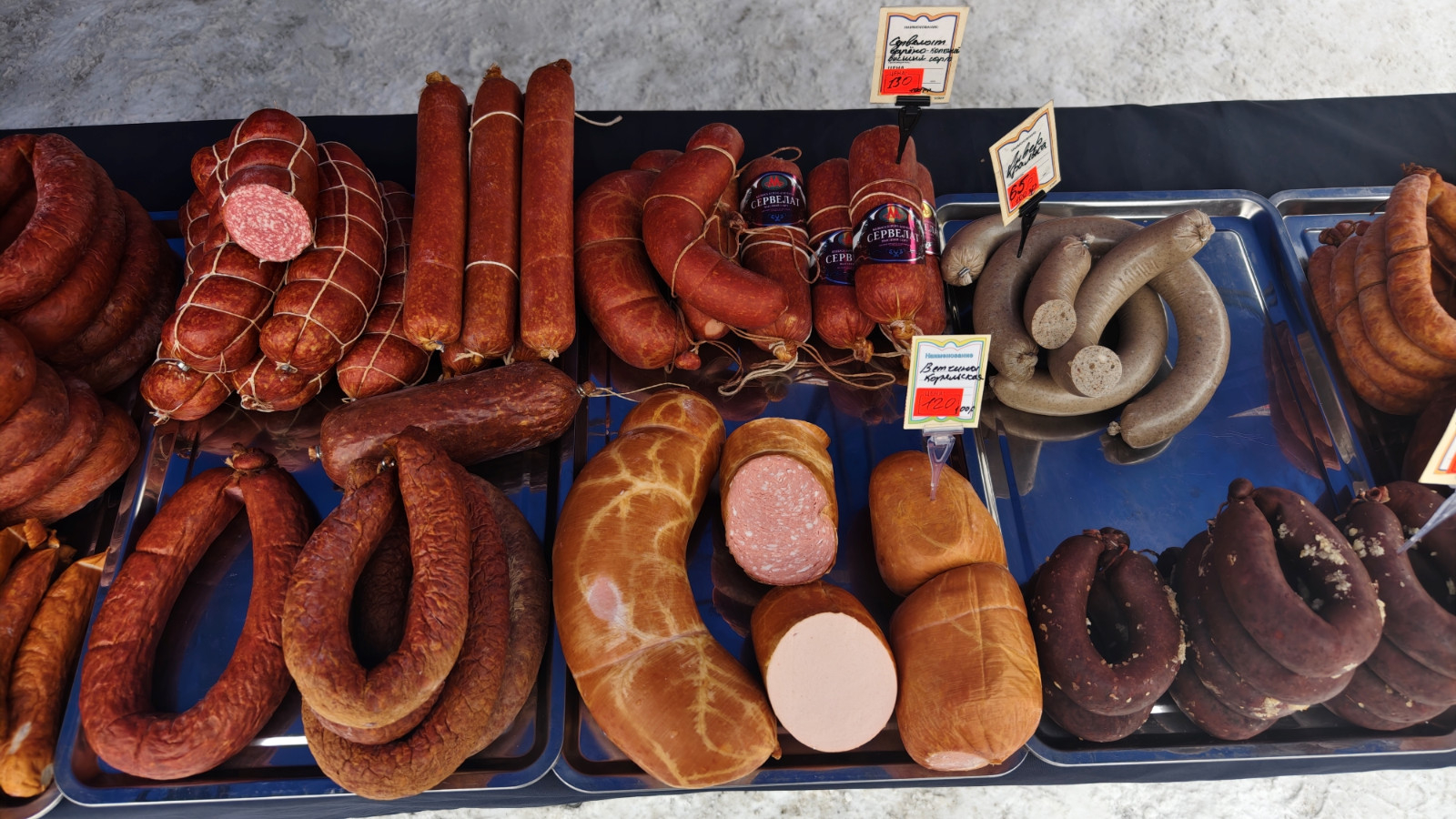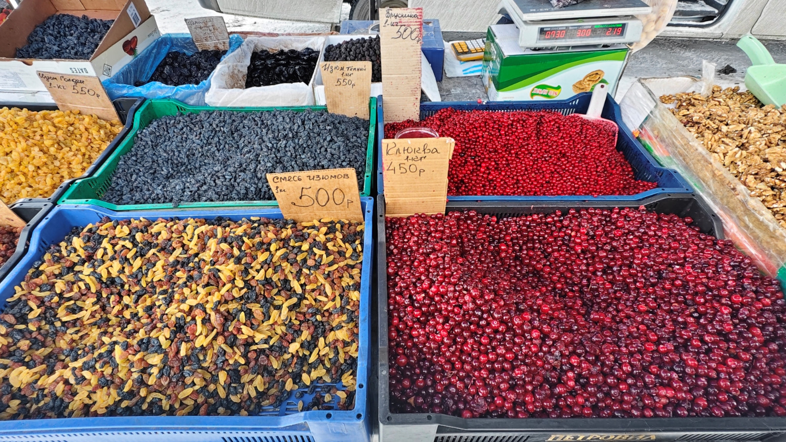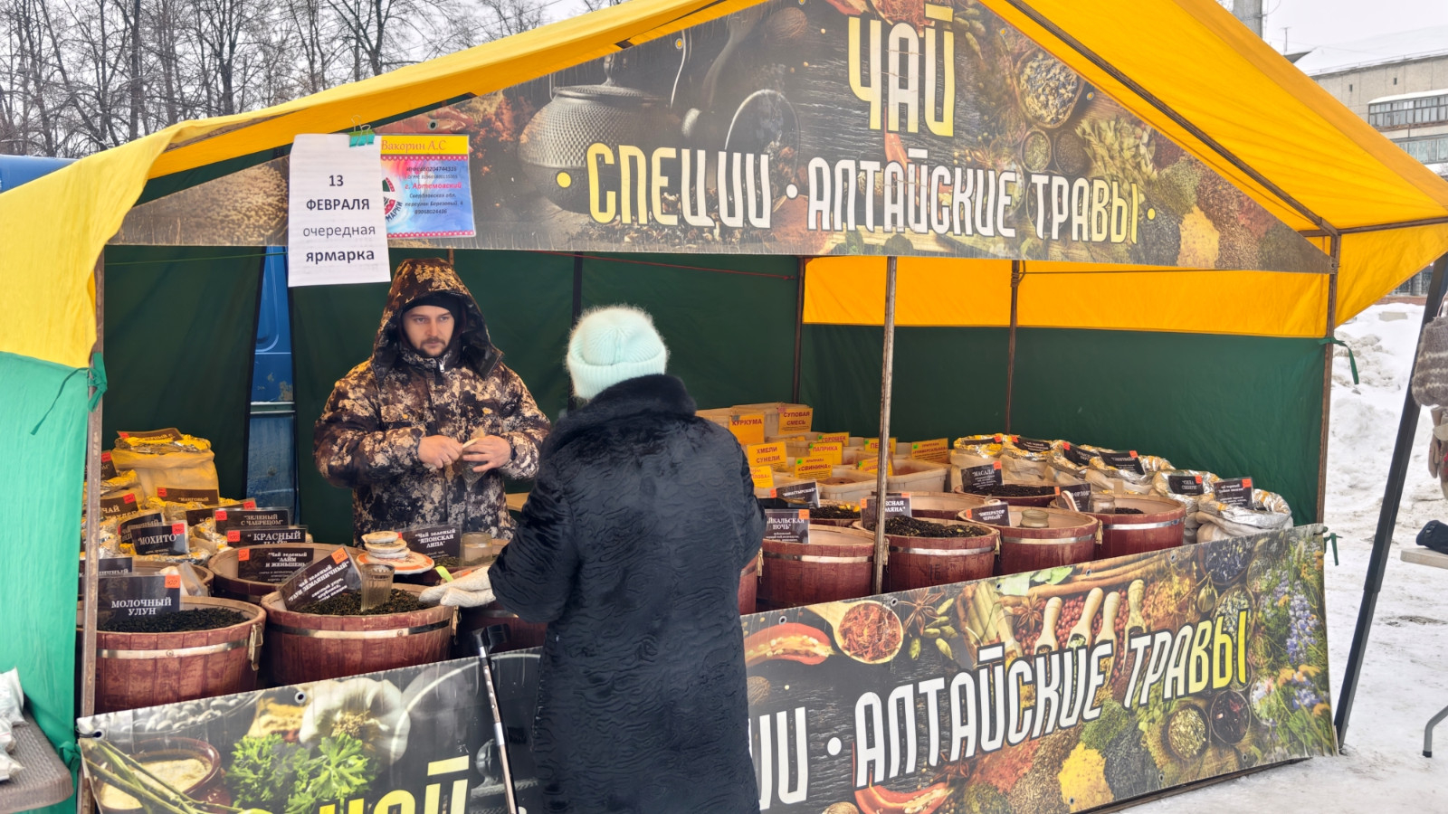 Покупатель на ярмарке разного возраста и достатка. Дамы моложавого вида в норковых шубках выбирают орехи и чай, пенсионерки протирают очки на масло и вареную колбаску, мужчины просят взвесить копченую рыбку не самого благородного происхождения.