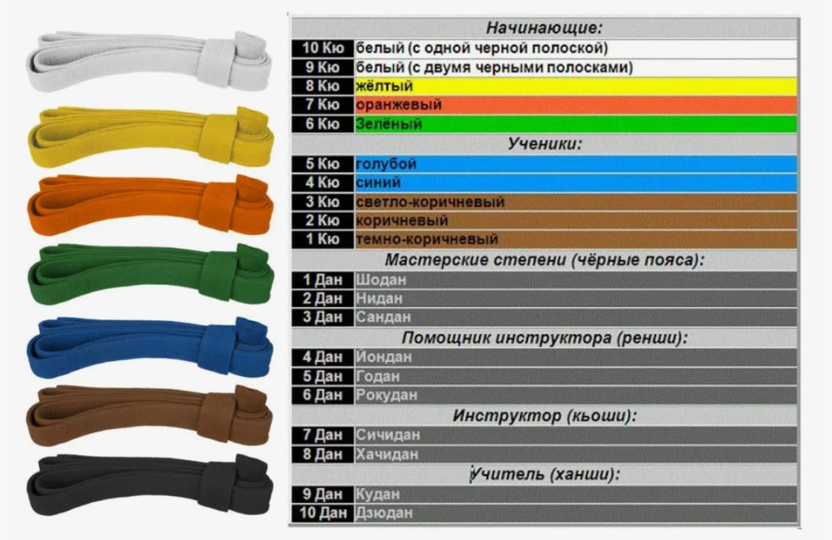 Пояса в айкидо используются для обозначения уровней мастерства и заслуг бойца. Ученические степени называются «кю», а степени мастеров — «дан».