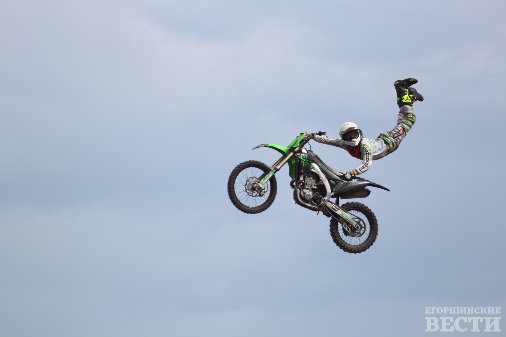 Фристайлеры устроили для зрителей грандиозное шоу. Бесстрашные молодые парни сразу полюбились зрителям. Особенно порадовал “паровозик”, где они друг за другом выполняли акробатические упражнения, вылетая из седла своих “железных коней”. Фото: Андрей Москвитин, “ЕВ”